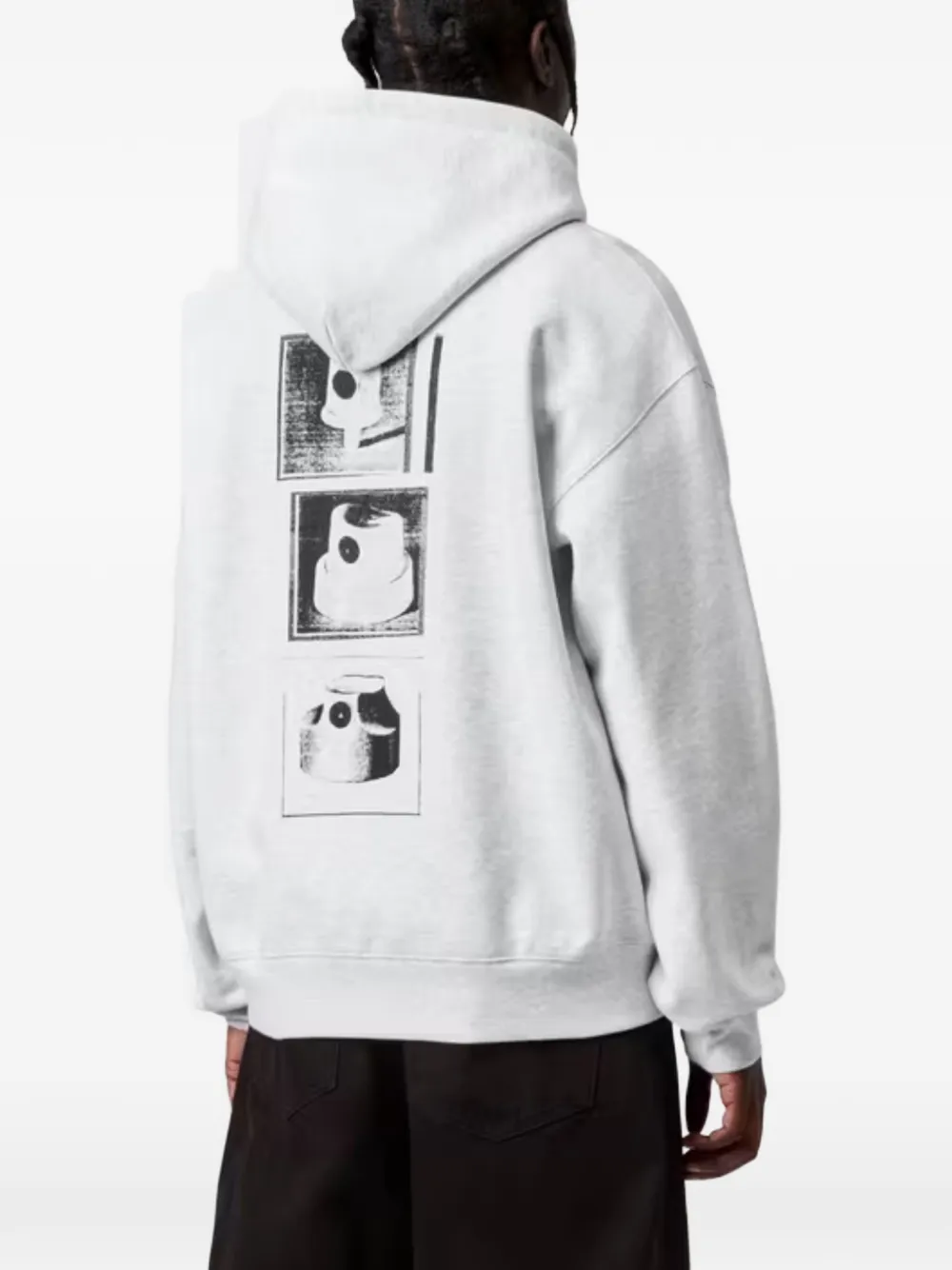 Серый хлопковый худи с логотипом, кулиской на капюшоне, передним карманом-кенгуру и графичным принтом на спине
