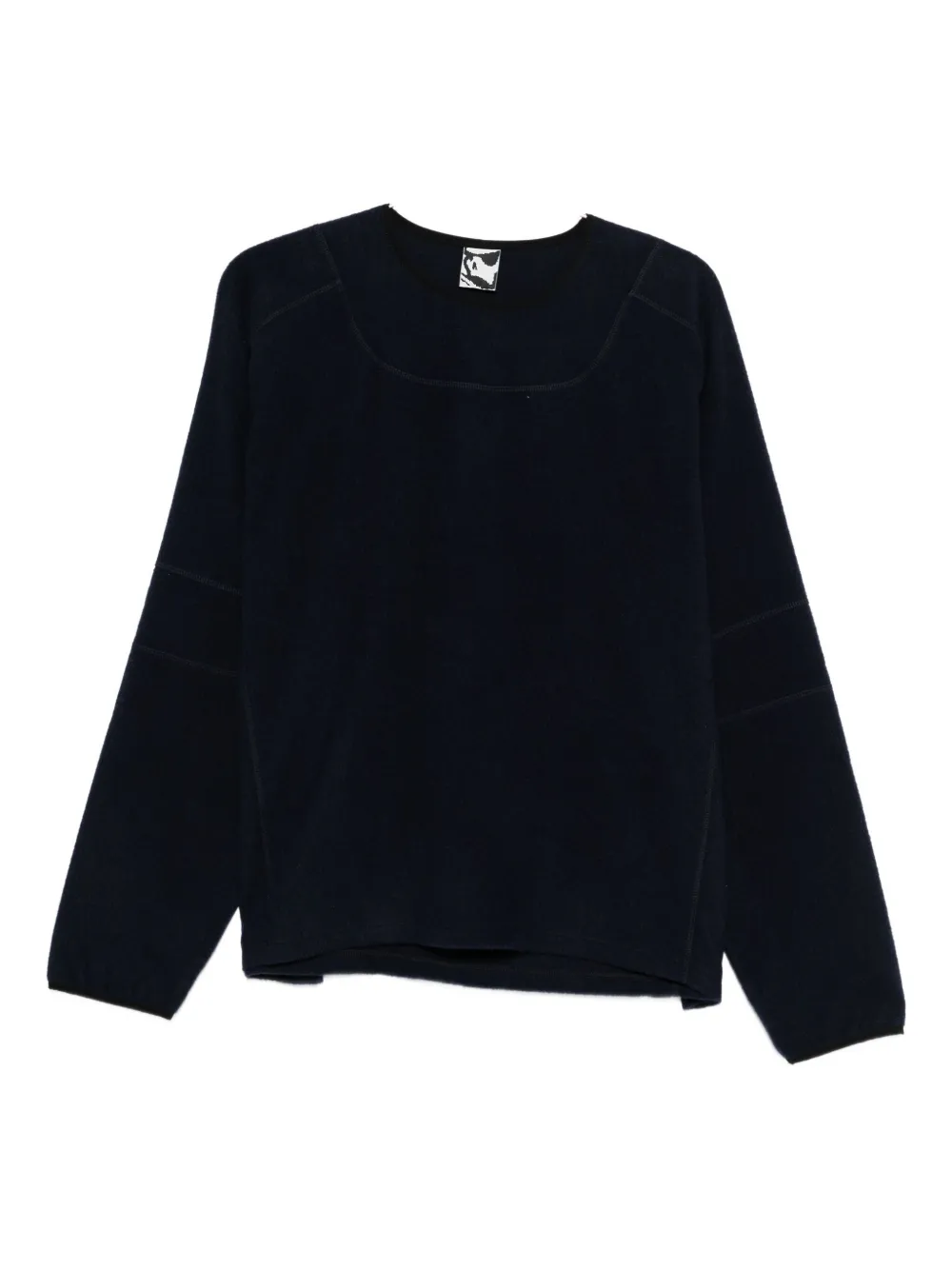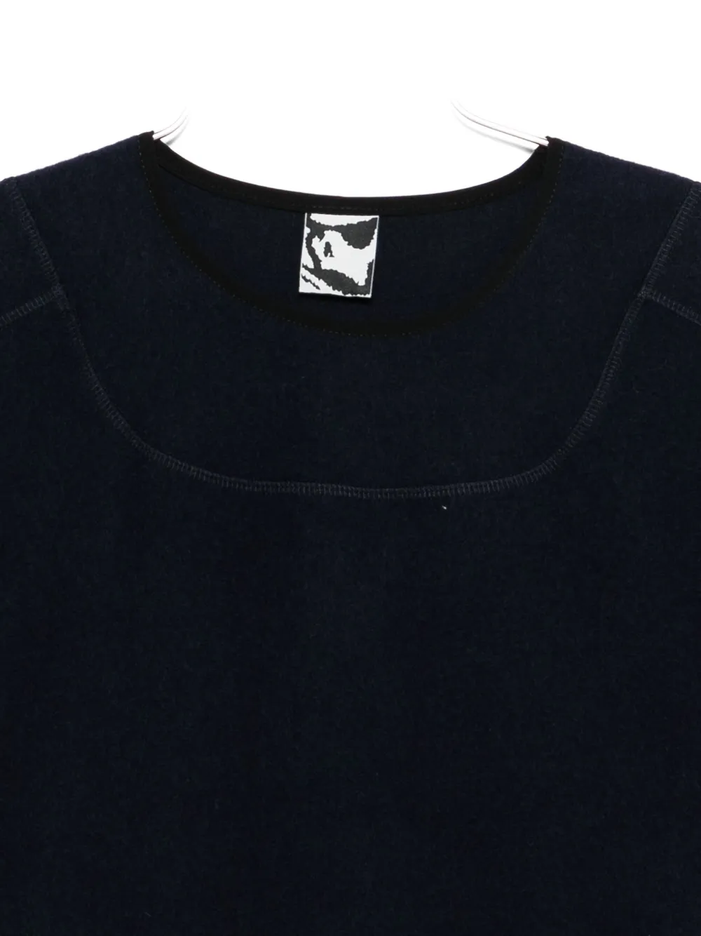 Темно-синяя футболка с круглым вырезом, длинными рукавами и отделкой