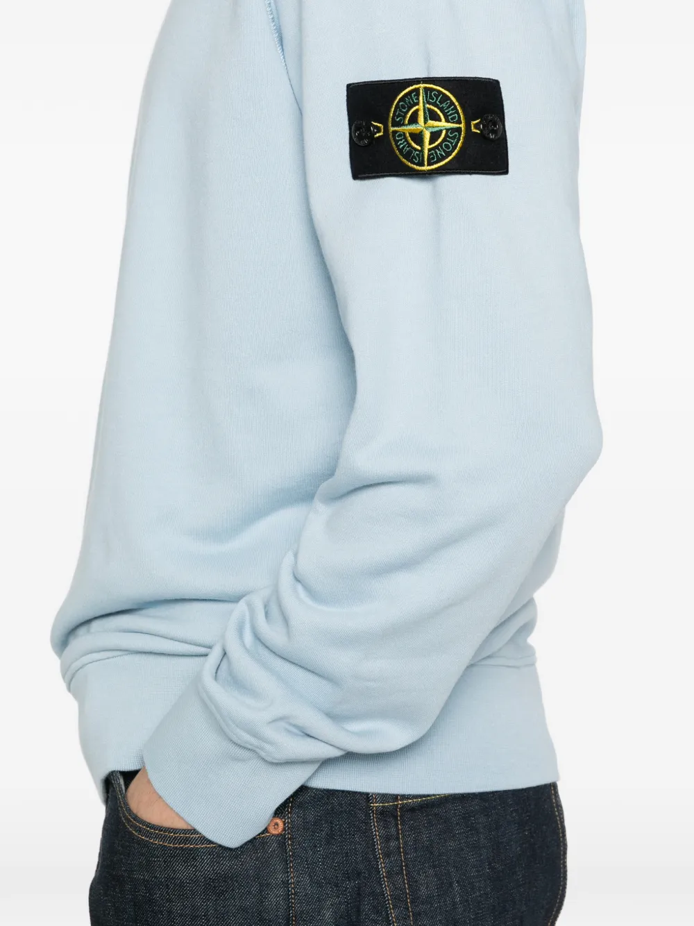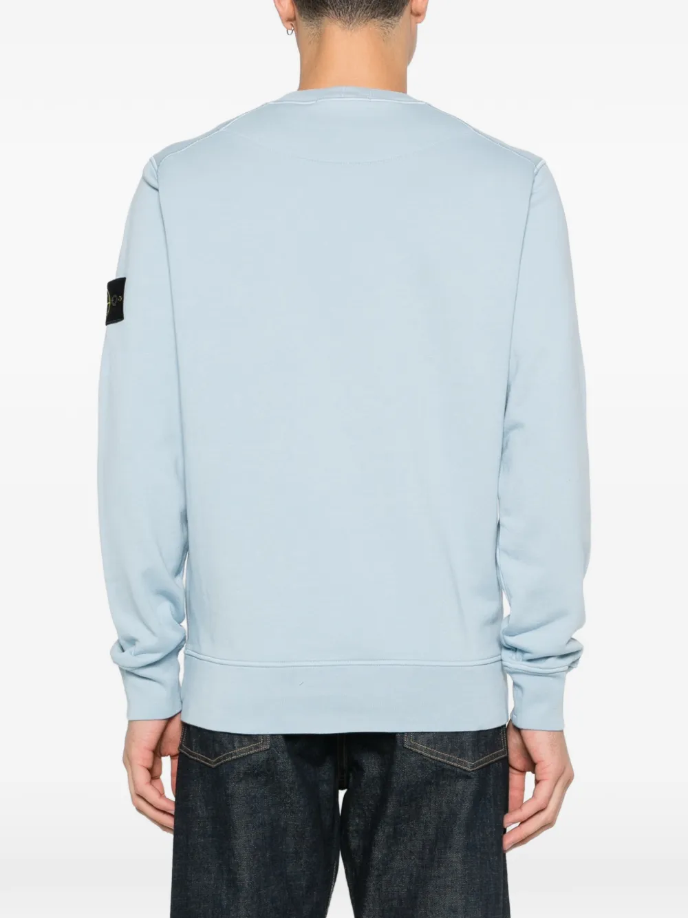 Светло-голубой свитшот с круглым вырезом, нашивкой с логотипом, длинными рукавами, ребристыми манжетами и подолом