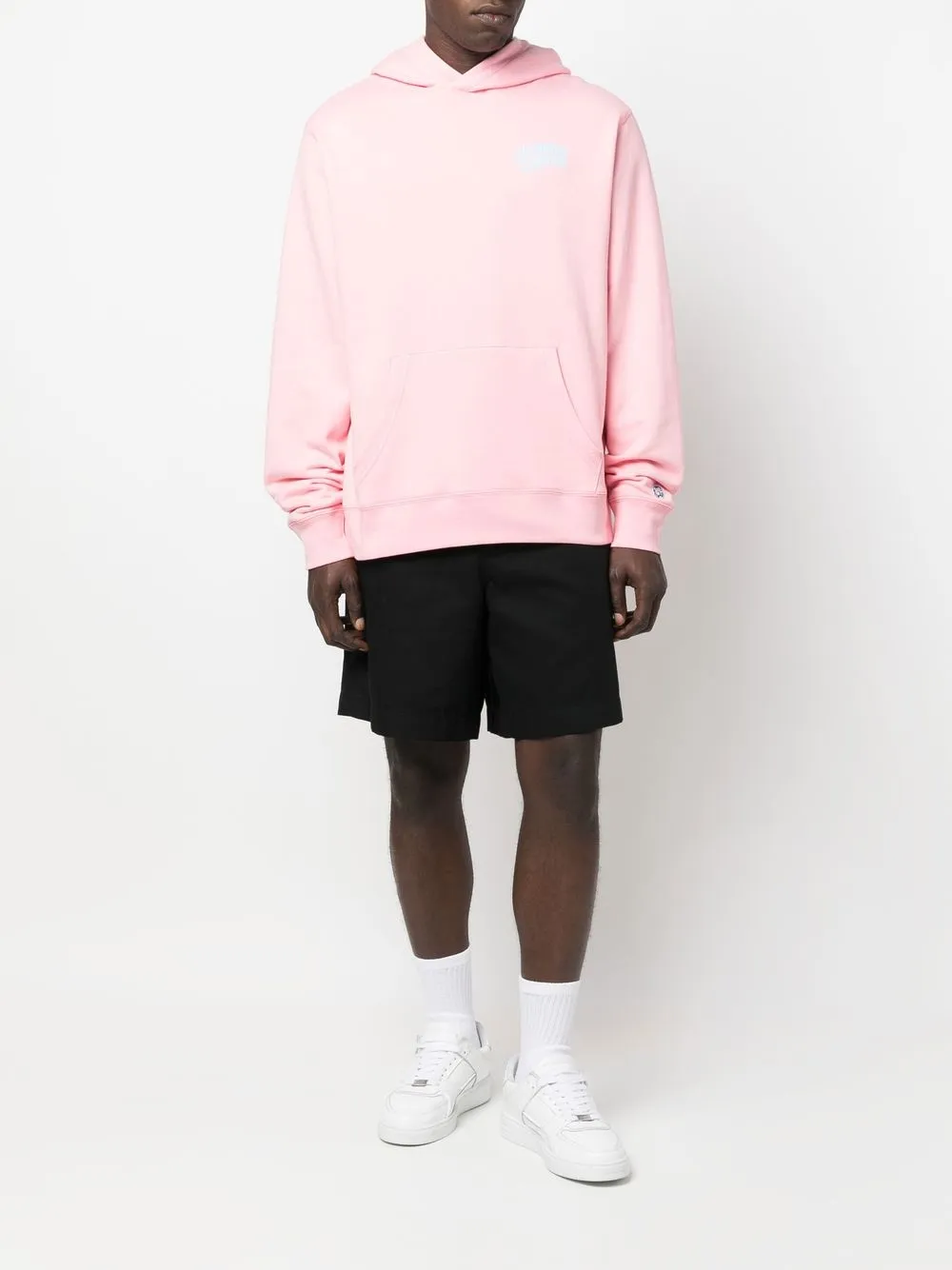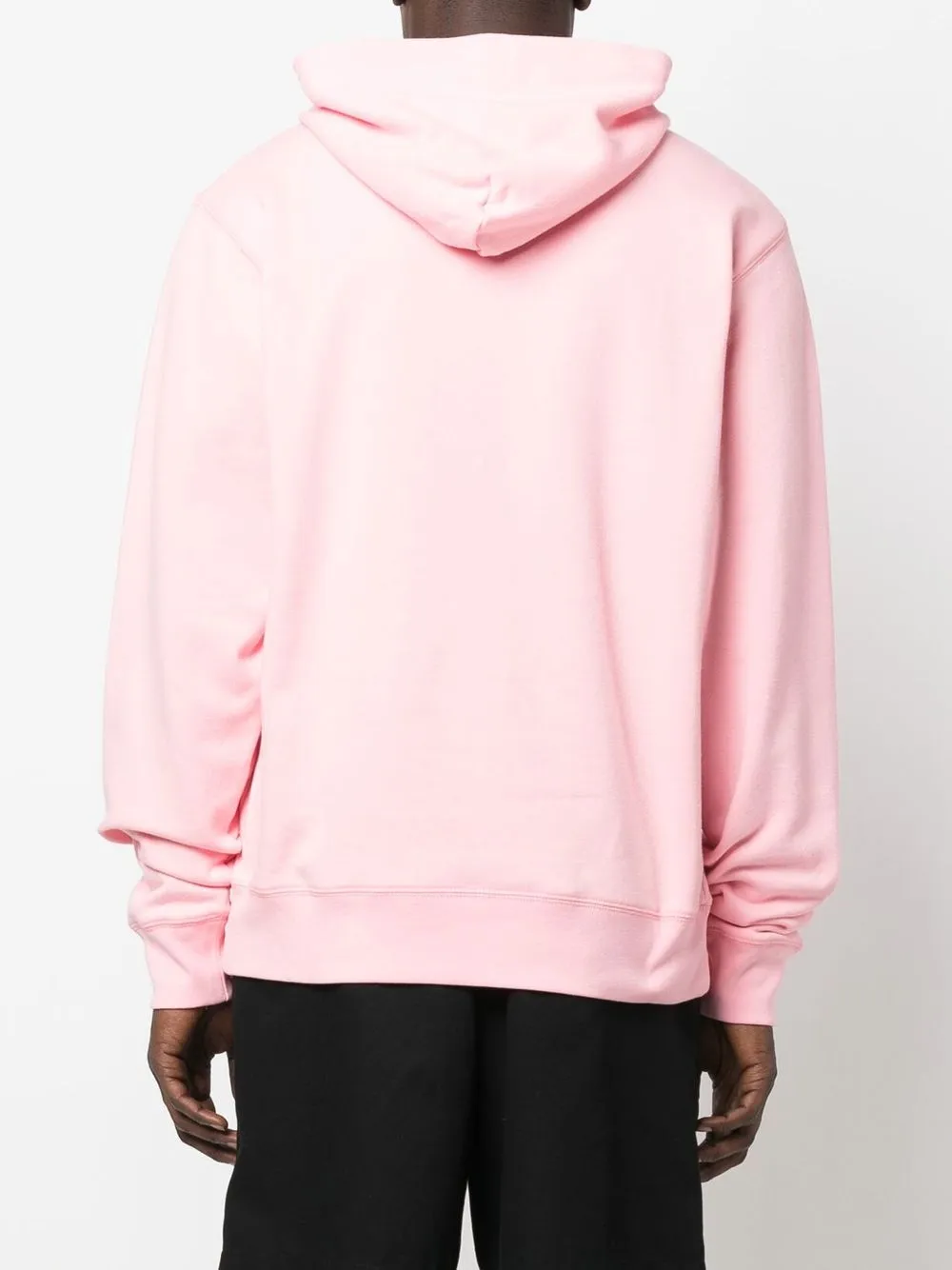Розовый, хлопок, логотип спереди, классический капюшон, длинные рукава и подол в рубчик.