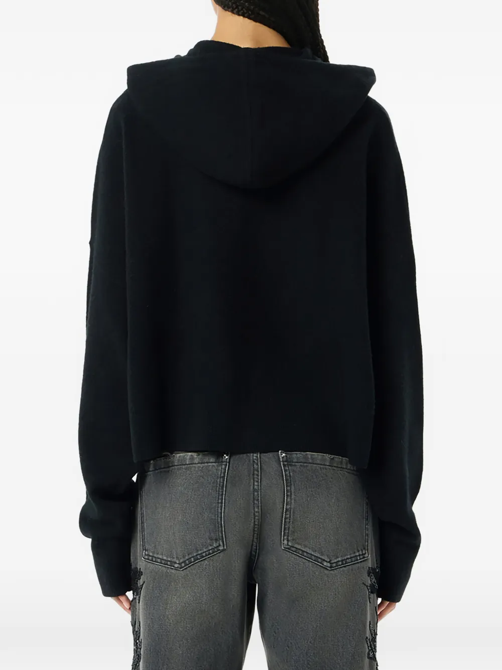 Черная укороченная худи из шерсти с вышивкой, украшенная стразами и шнурком