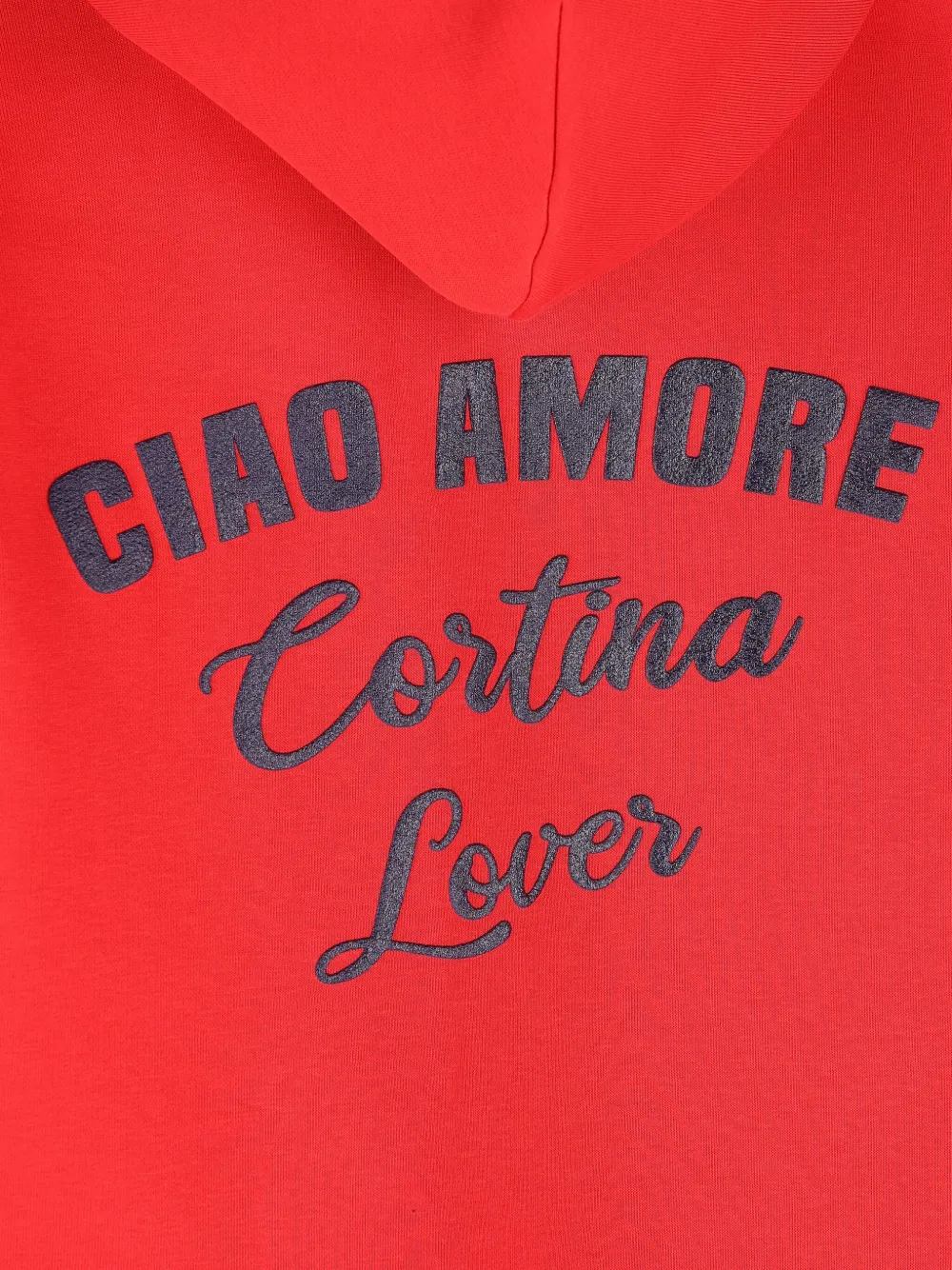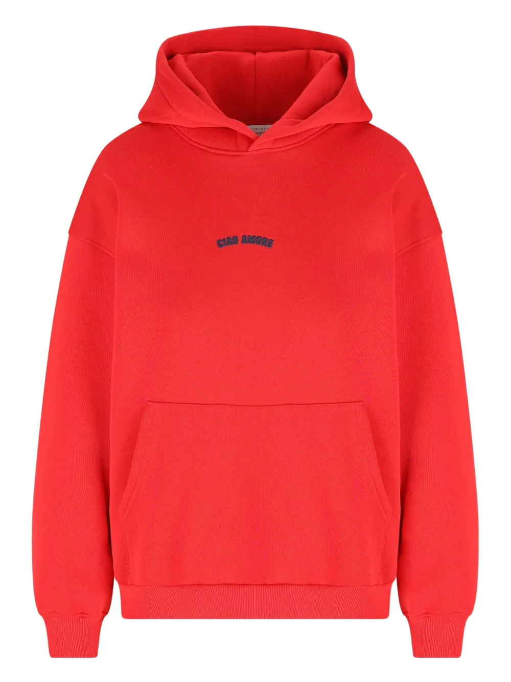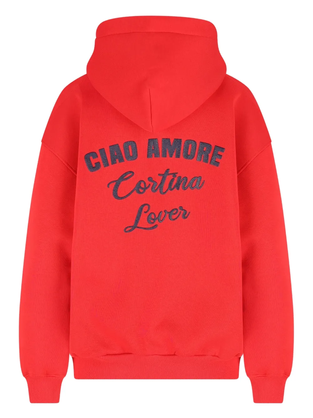 Красный вышитые буквы капюшон заниженная линия плеч длинные рукава