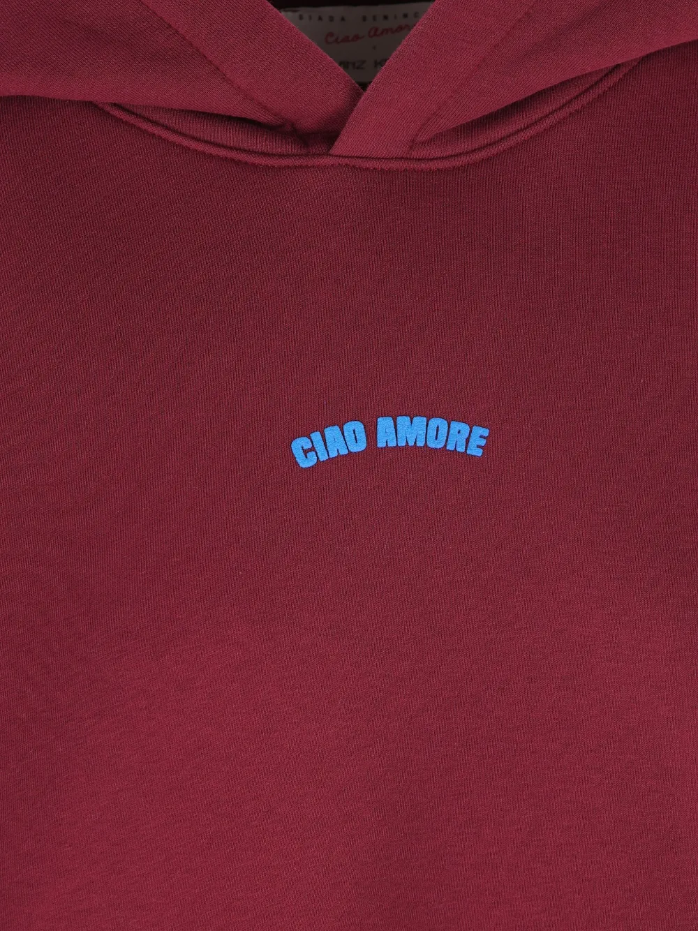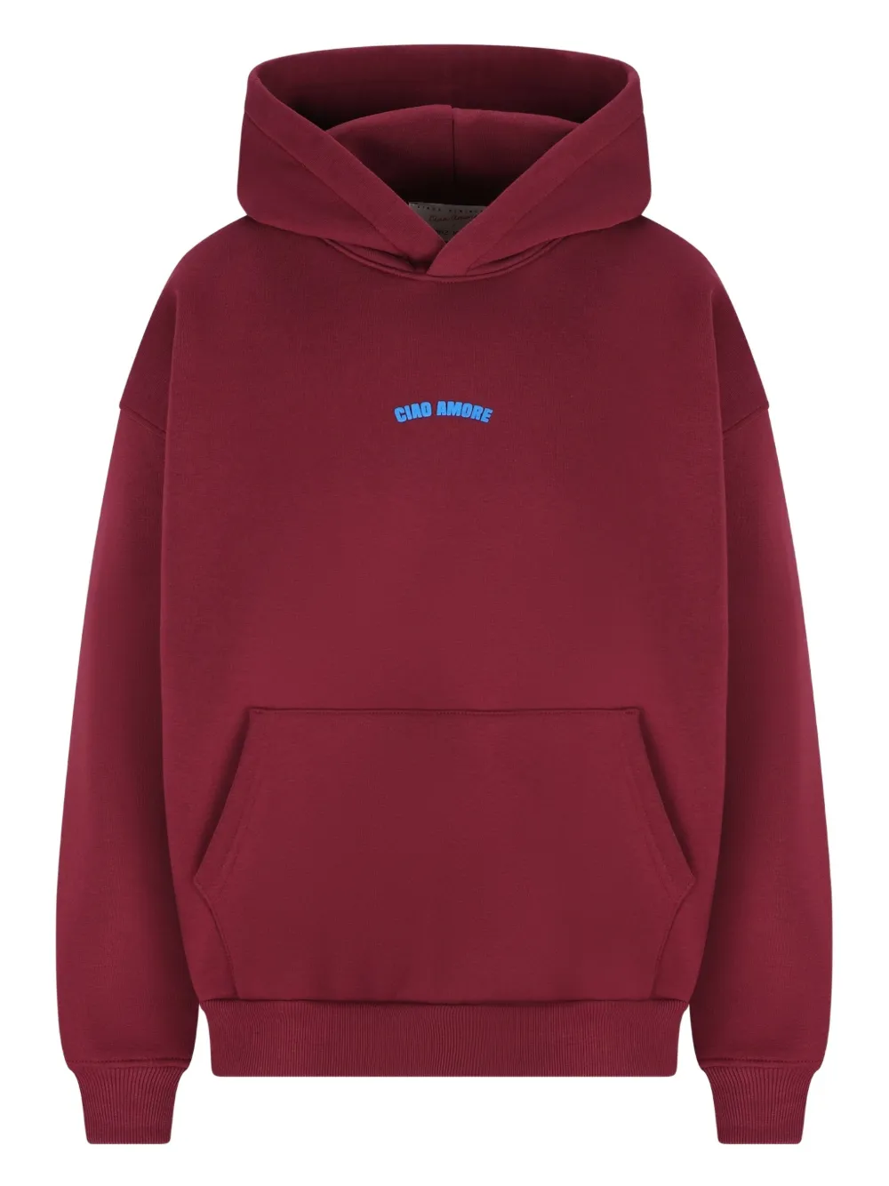 Бордовый худи с принтом «ciao amore», принтом «cortina lover», капюшоном, карманом-кенгуру и длинными рукавами