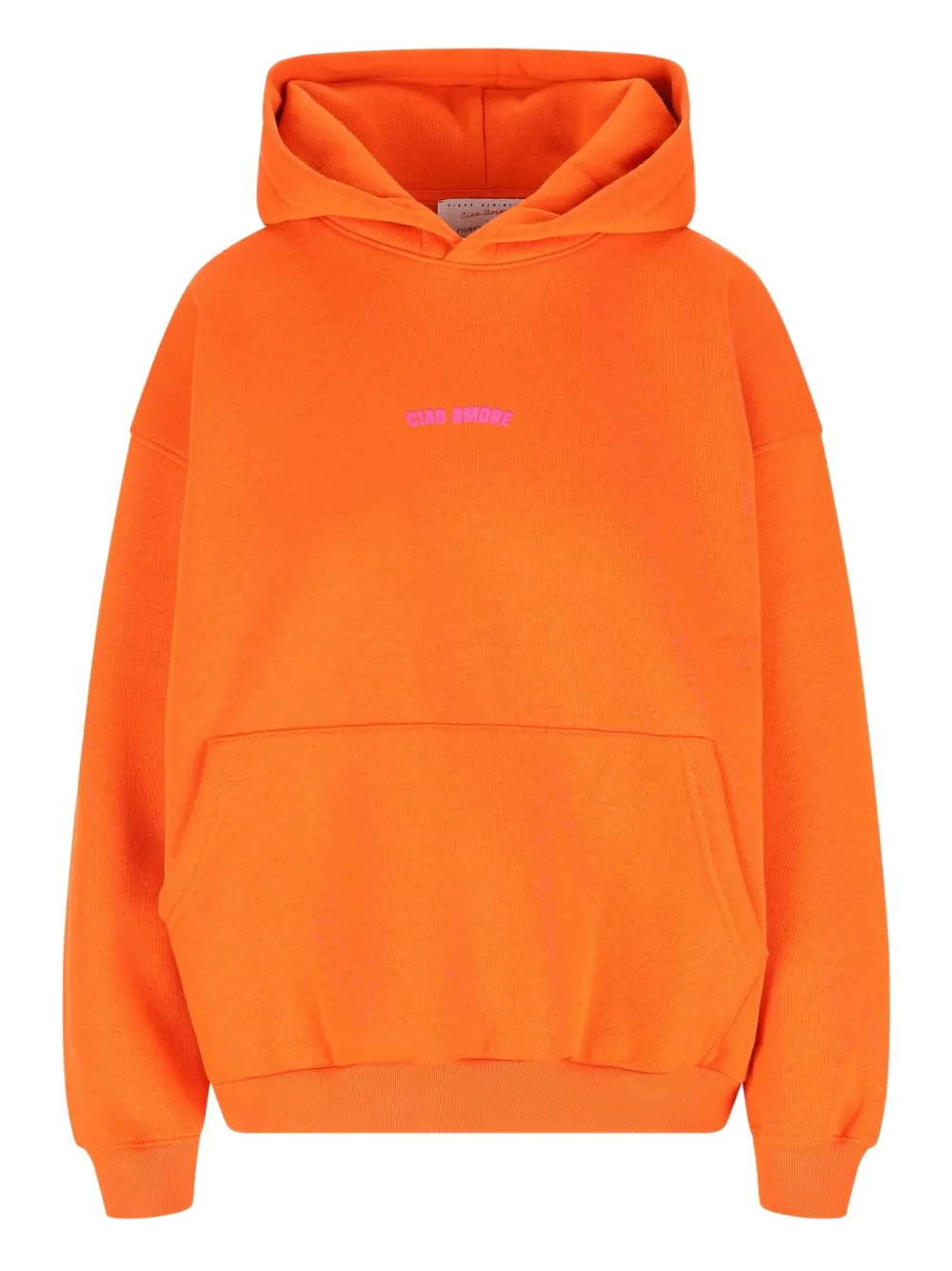 Оранжевый принт с логотипом капюшон карман-кенгуру длинные рукава рубчатый подол рубчатые манжеты