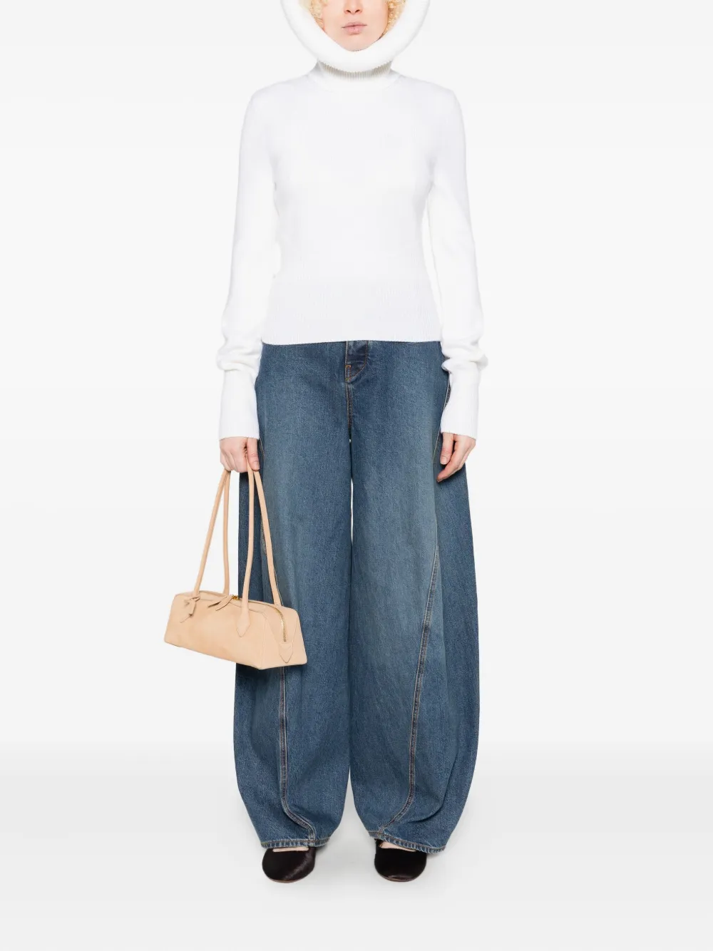 Белый водолазка с ребристыми деталями и длинными рукавами