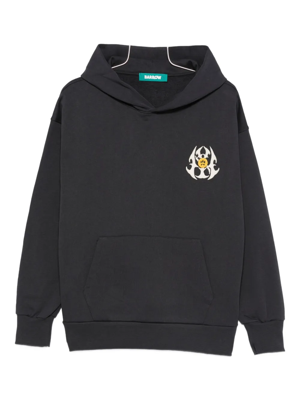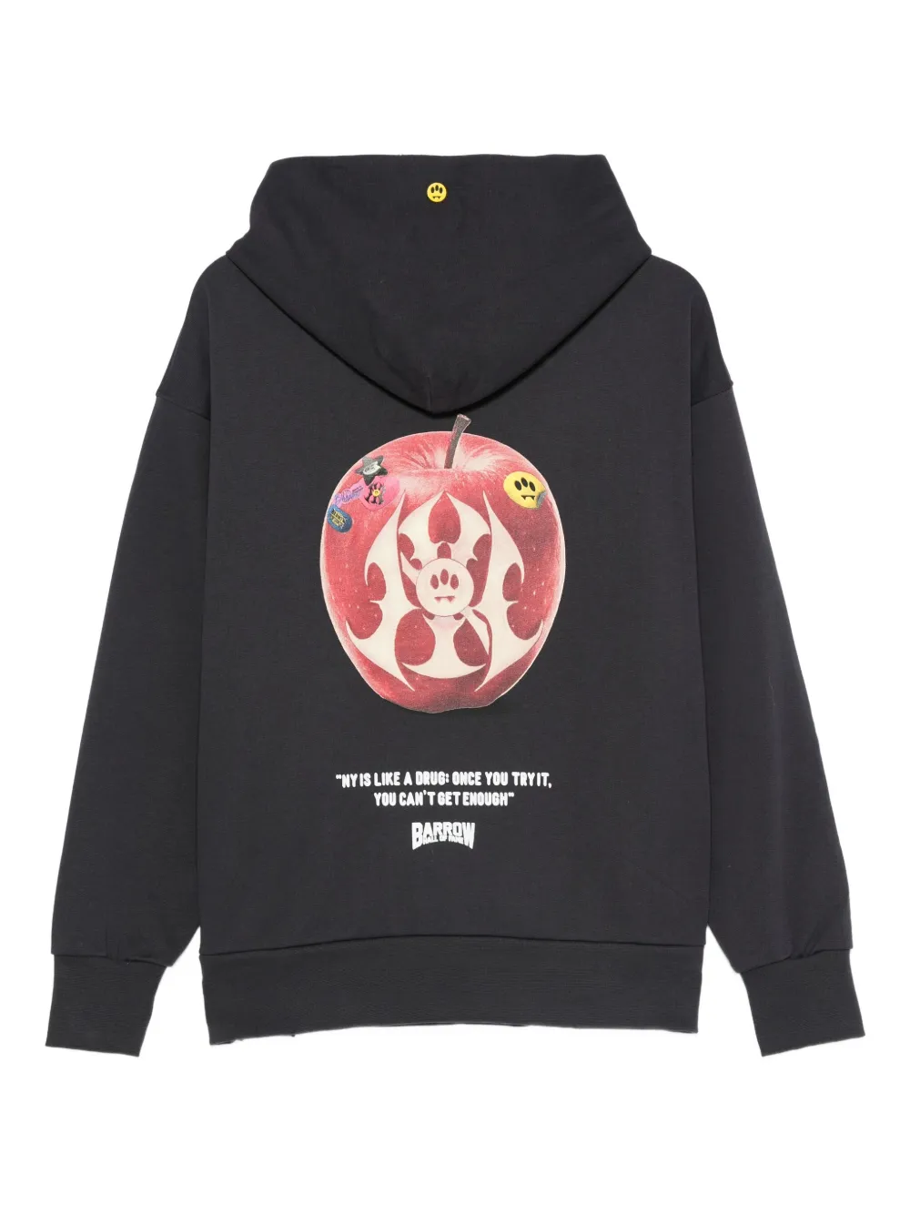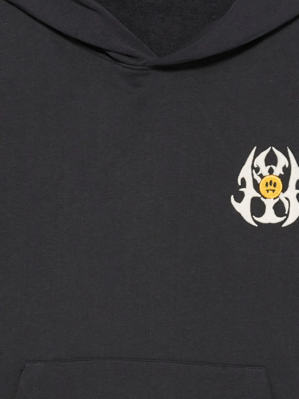 Черный графический принт капюшон на завязках длинные рукава карман-кенгуру спереди эластичный край