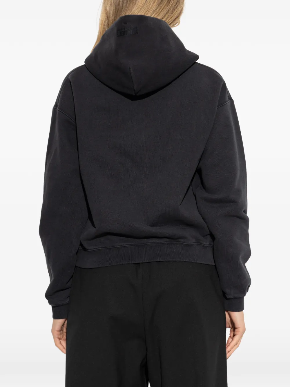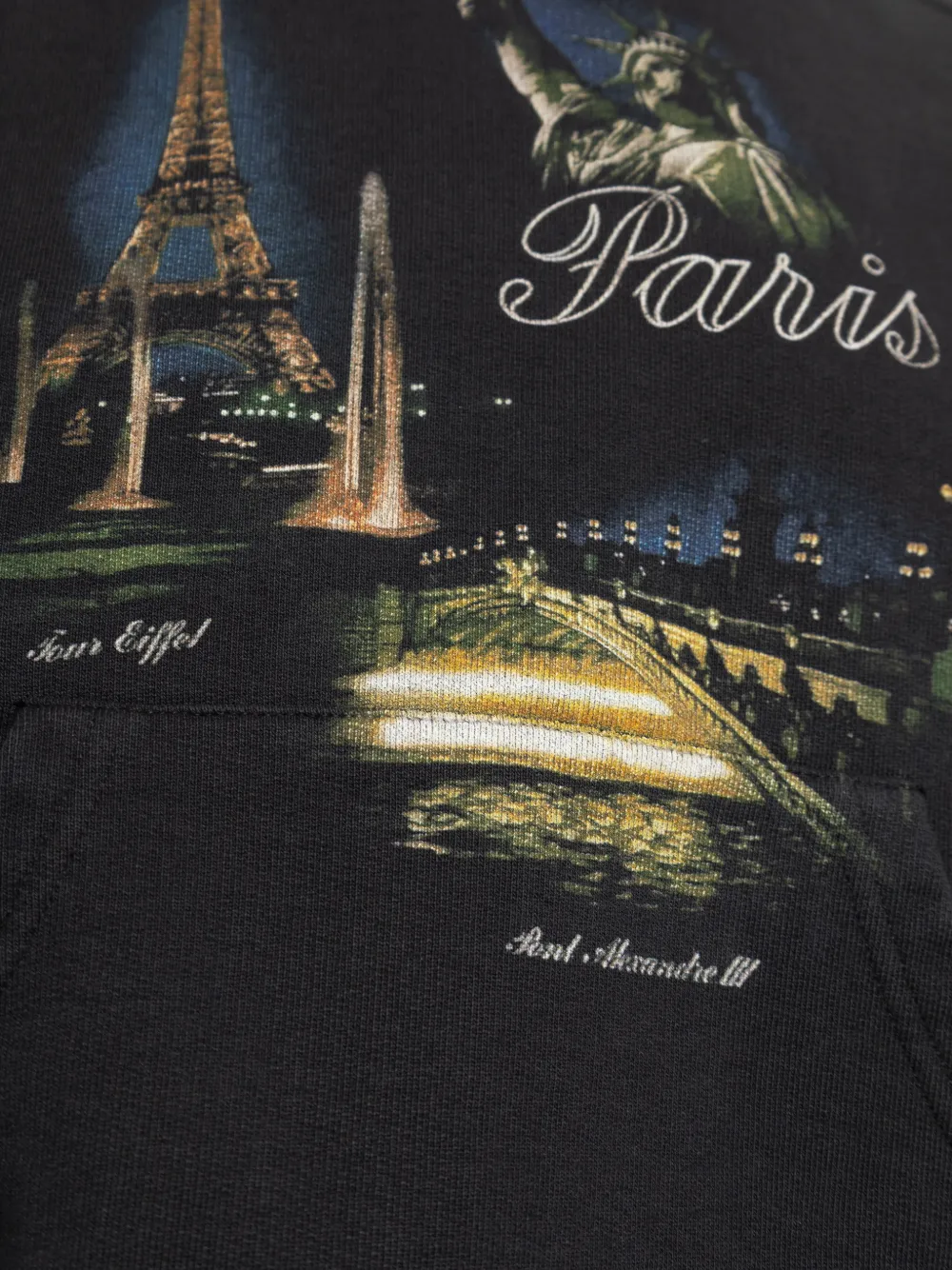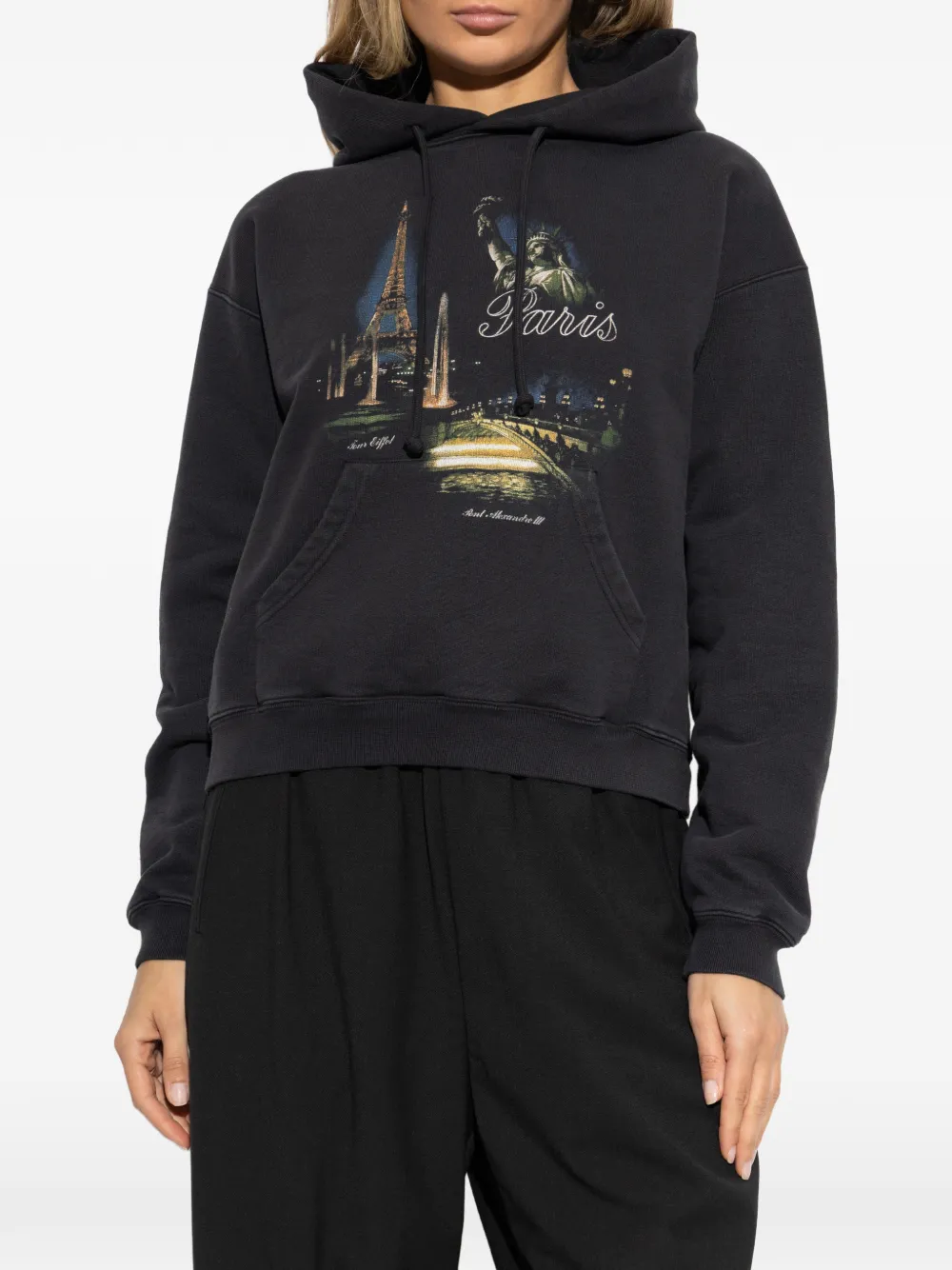 Черная толстовка с графическим принтом, кулиской на капюшоне, карманом-кенгуру, длинными рукавами и ребристым низом