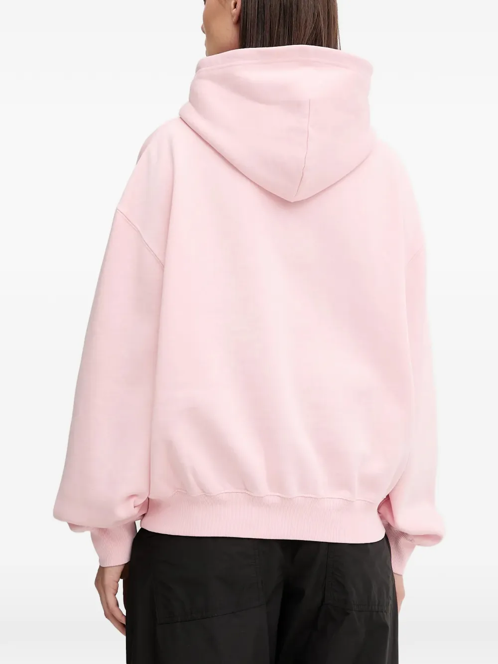 Светло-розовый худи с логотипом, передним карманом-кенгуру, длинными рукавами и ребристыми манжетами и нижним краем