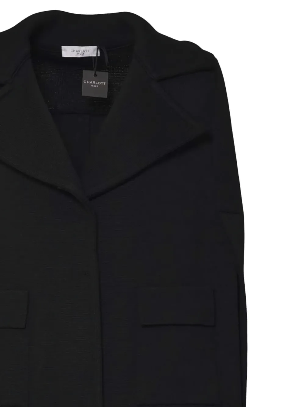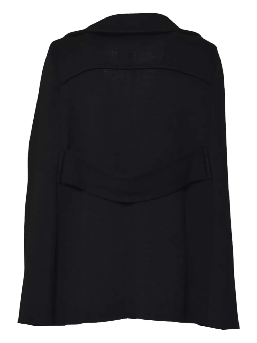Черная накидка с лацканами, накладными карманами спереди и скрытой застежкой