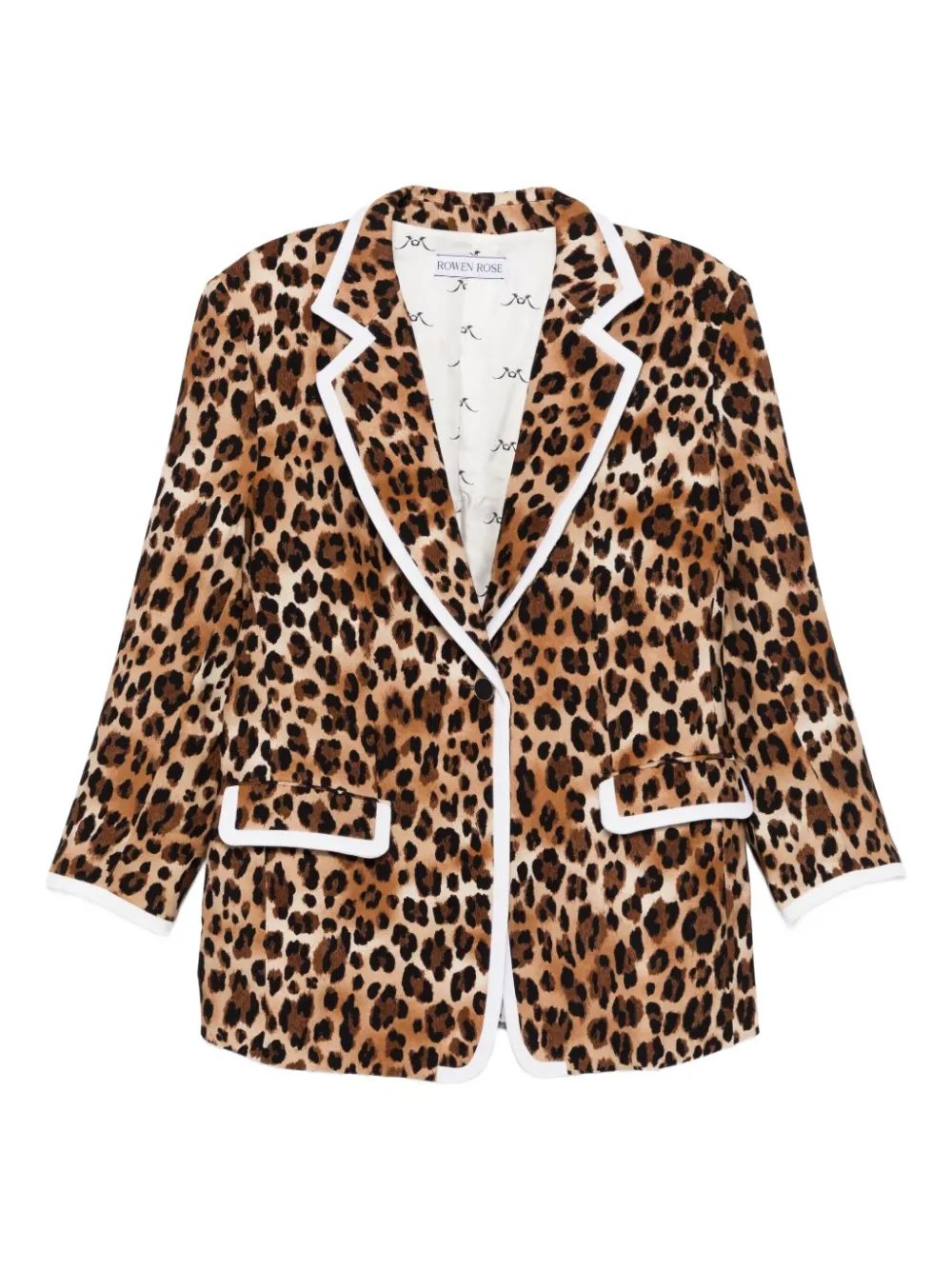 Коричневый леопардовый принт, застежка на пуговицы, прорезные карманы, лацканы с вырезом, контрастная отделка