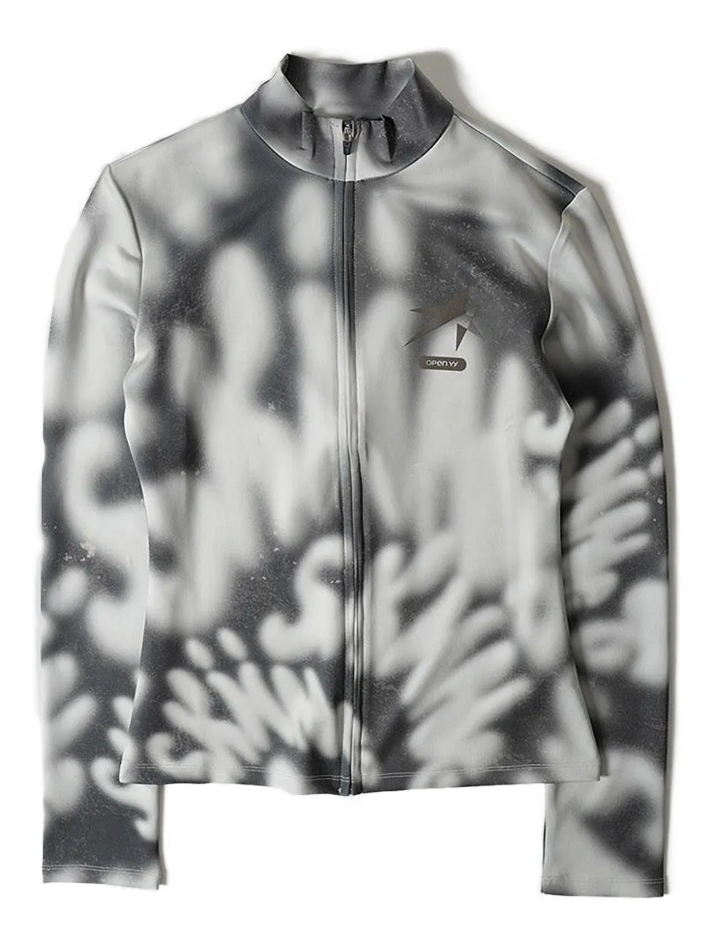 Угольно-серый графический принт застежка-молния высокий воротник