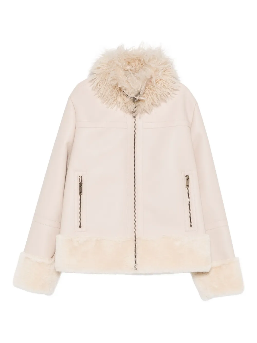 Бежевый искусственный меховой воротник, застежка-молния, манжеты из искусственного меха, карманы на молнии, длинные рукава