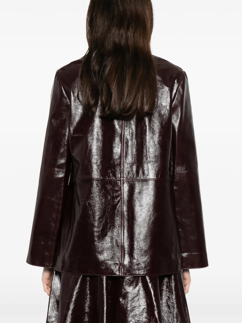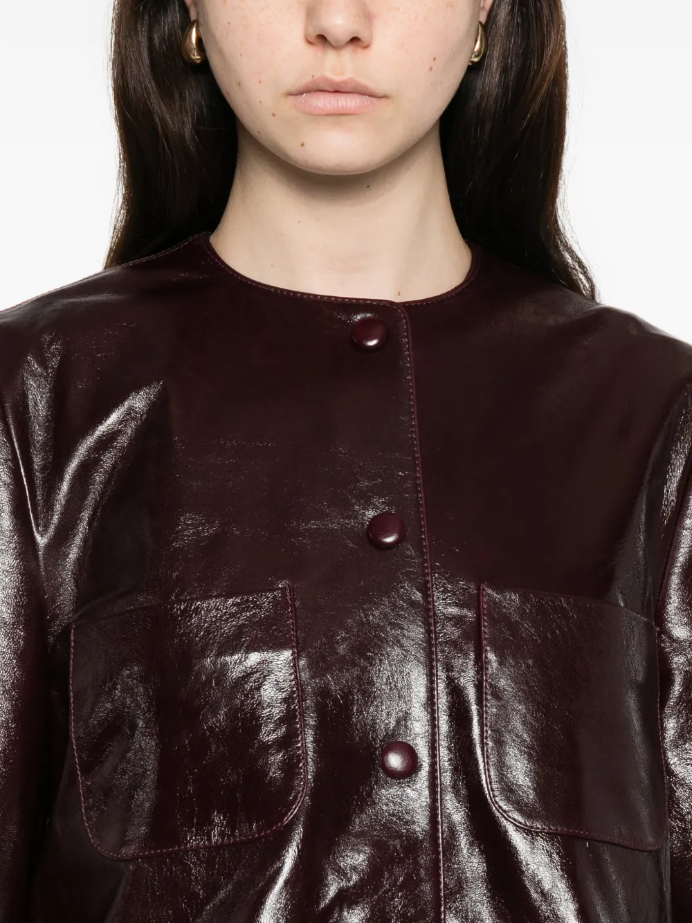 Бордовый, накладные карманы спереди, круглый вырез, застежка на пуговицы спереди, длинные рукава