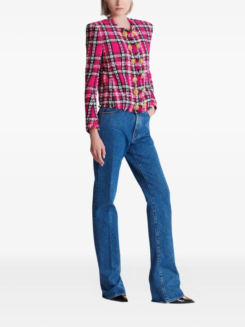 Клетчатая куртка на пуговицах Balmain, розовый