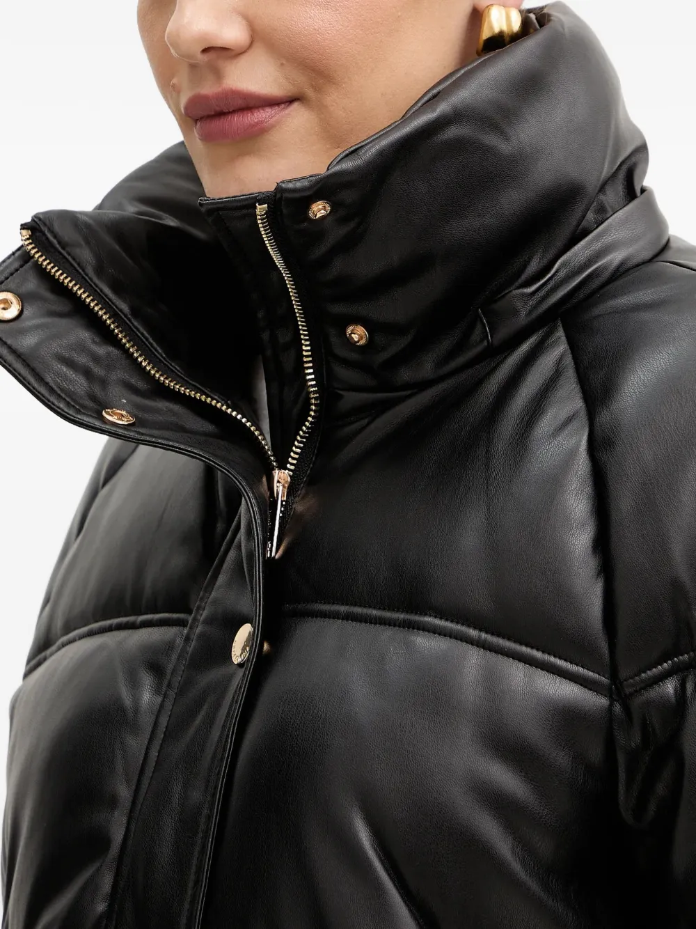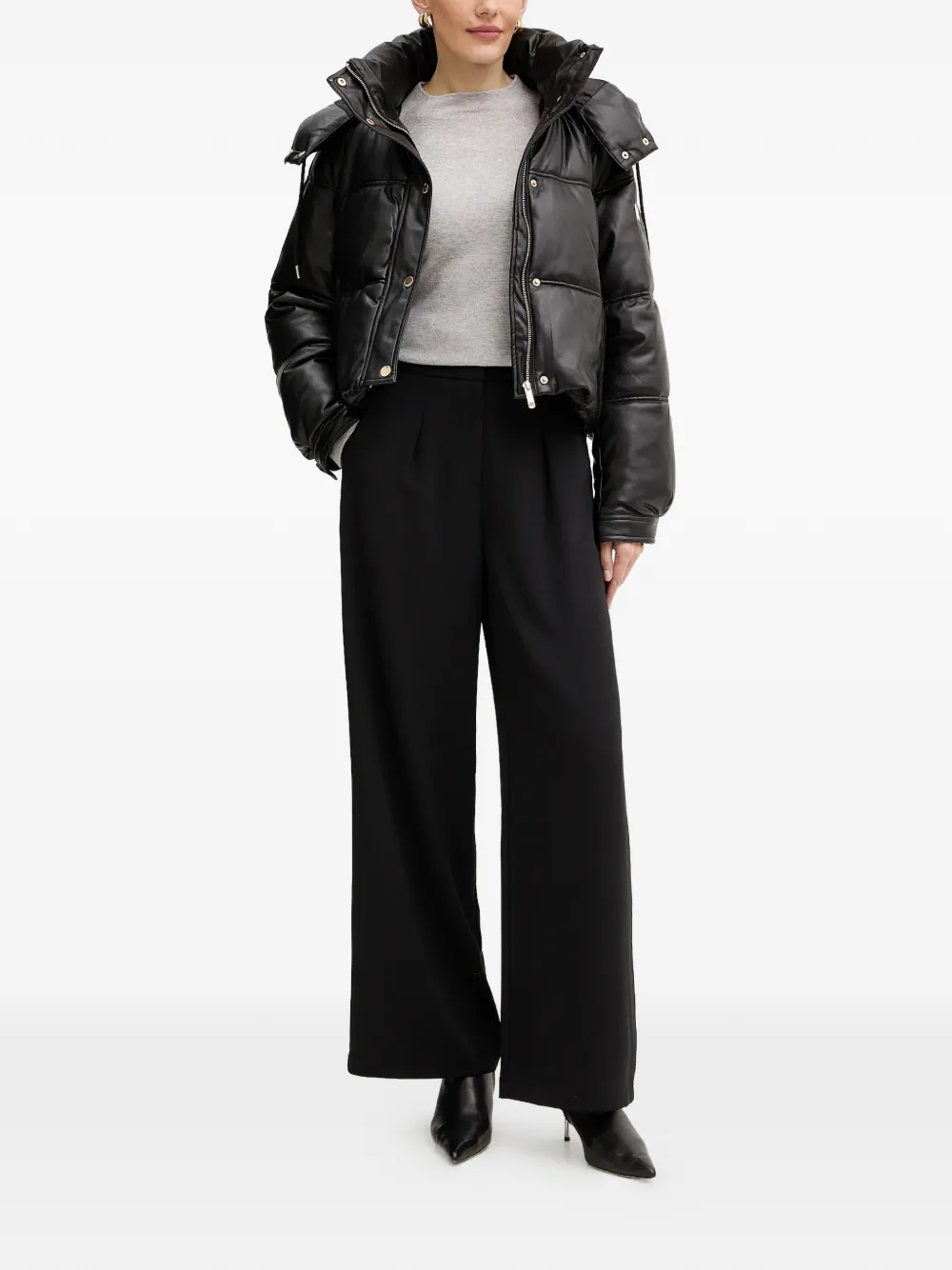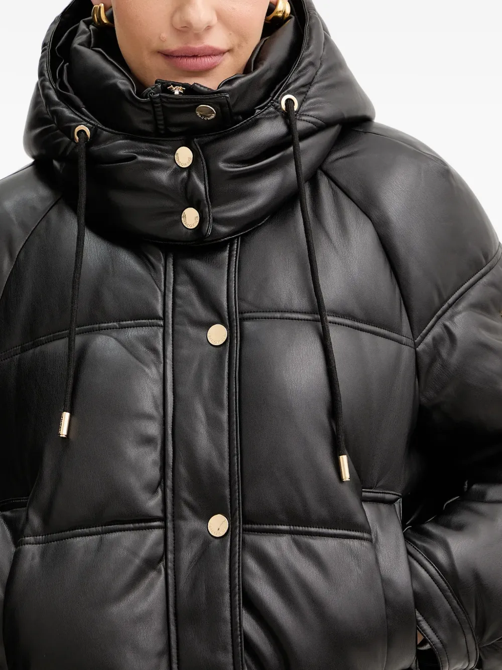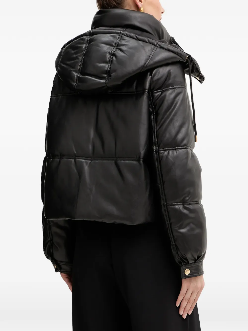 Черный стеганый дизайн, капюшон со шнурком, застежка на пуговицы спереди, застежка-молния, укороченный крой