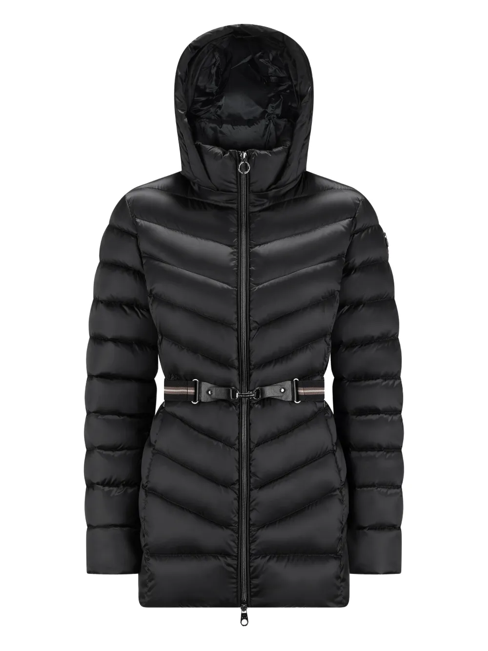 Пуховик с капюшоном и поясом Cape Horn, черный