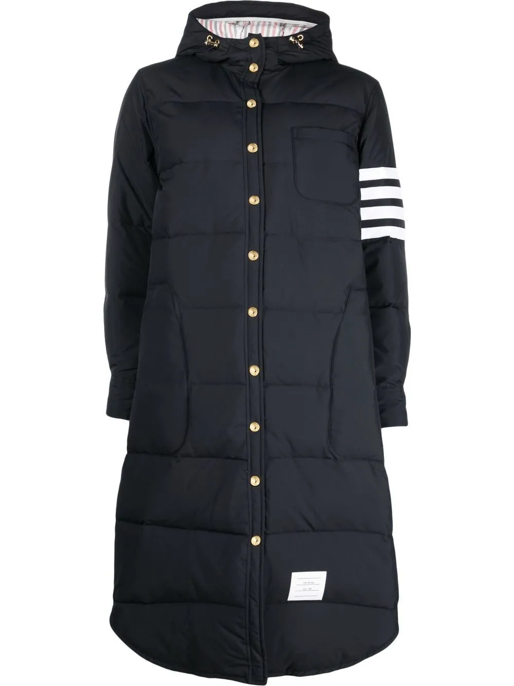 Пуховик с капюшоном и полосками 4-Bar Thom Browne, синий 340 571₽