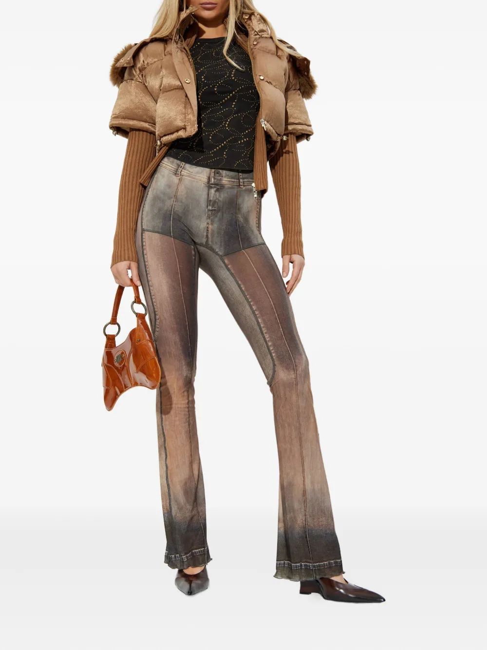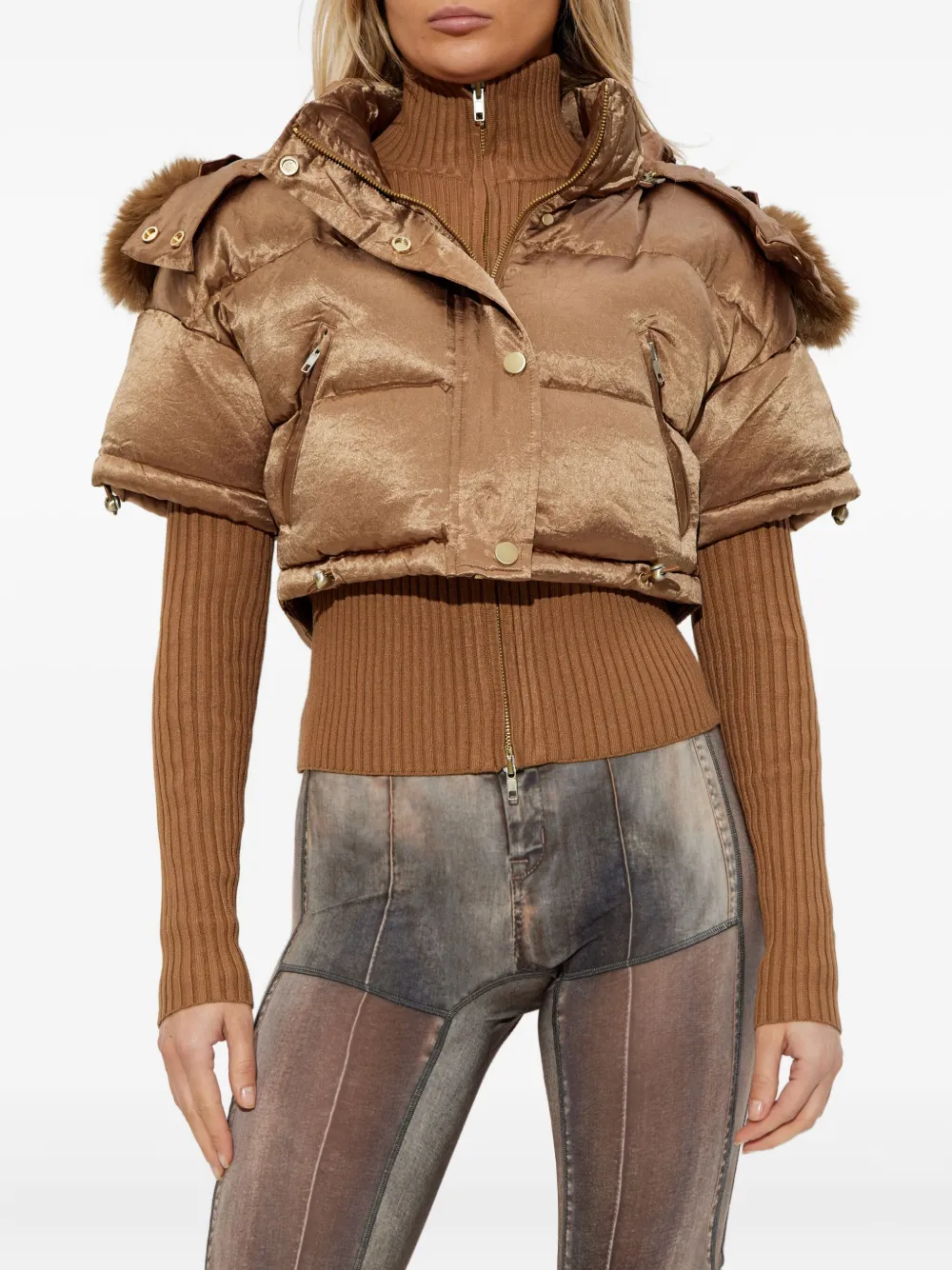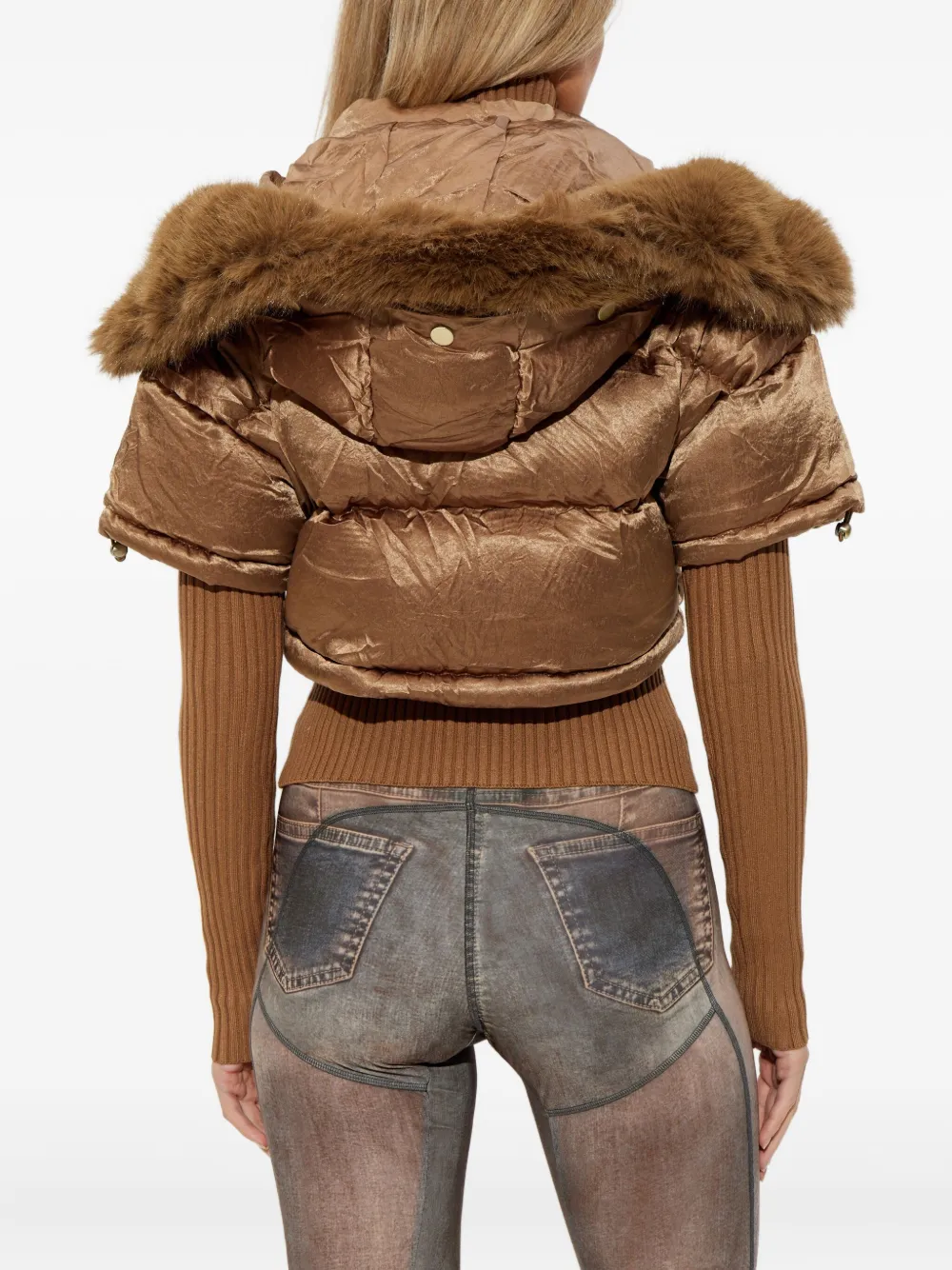 Коричневый цвет, отделка из искусственного меха, застежка-молния, застежка на кнопки спереди, передние карманы на молнии
