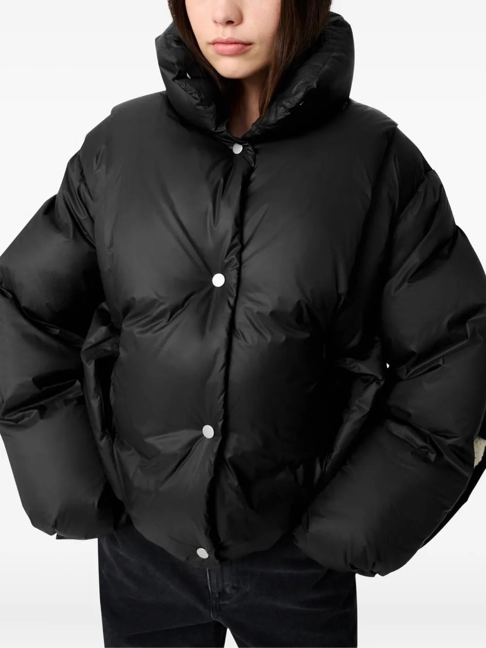 Черная куртка с высоким воротом, длинными рукавами и стеганым дизайном