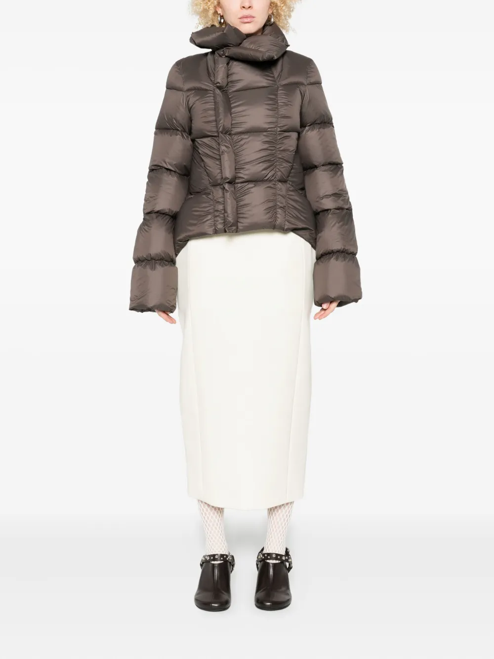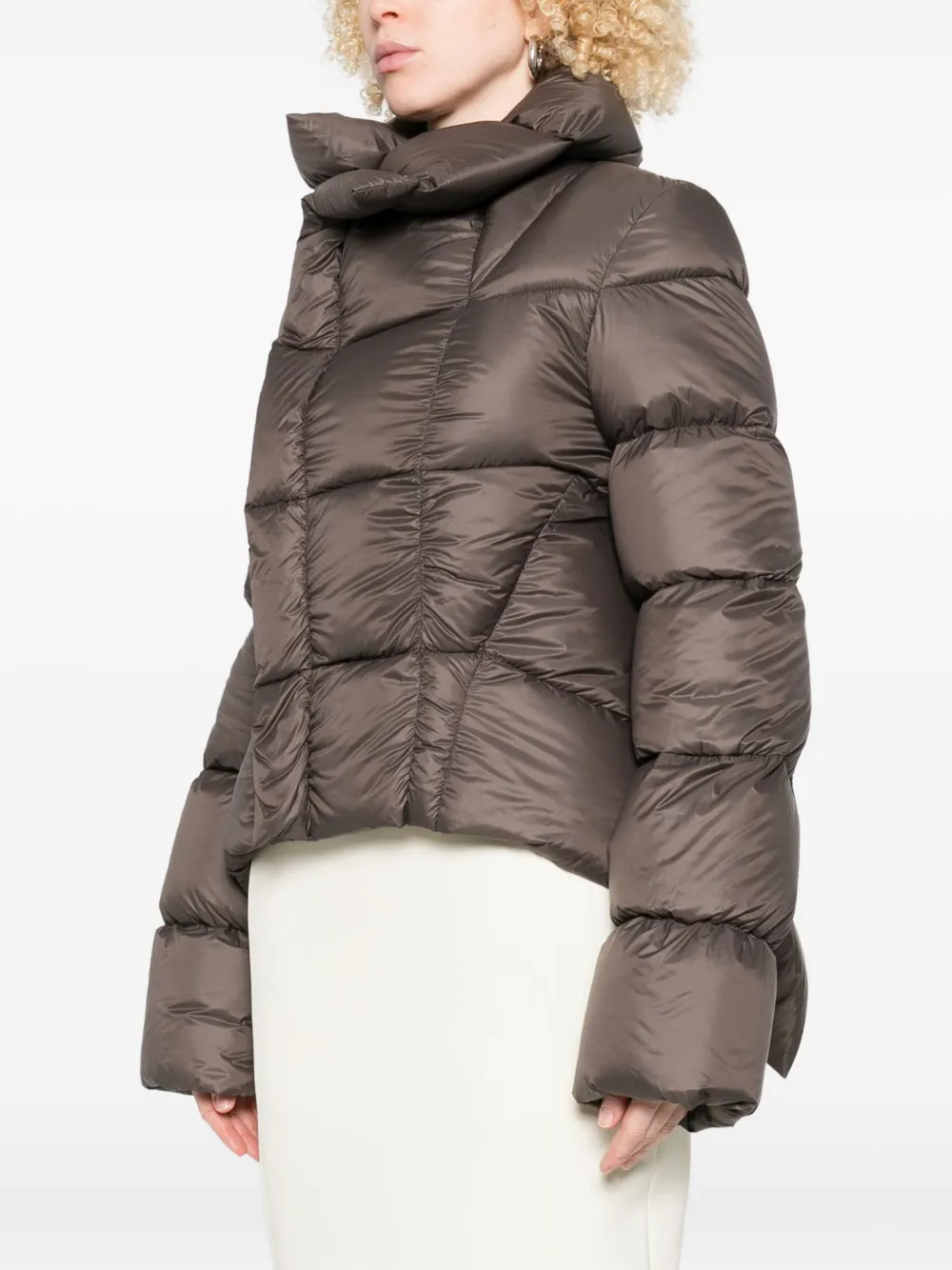 Серый высокий воротник асимметричный подол застежка-молния