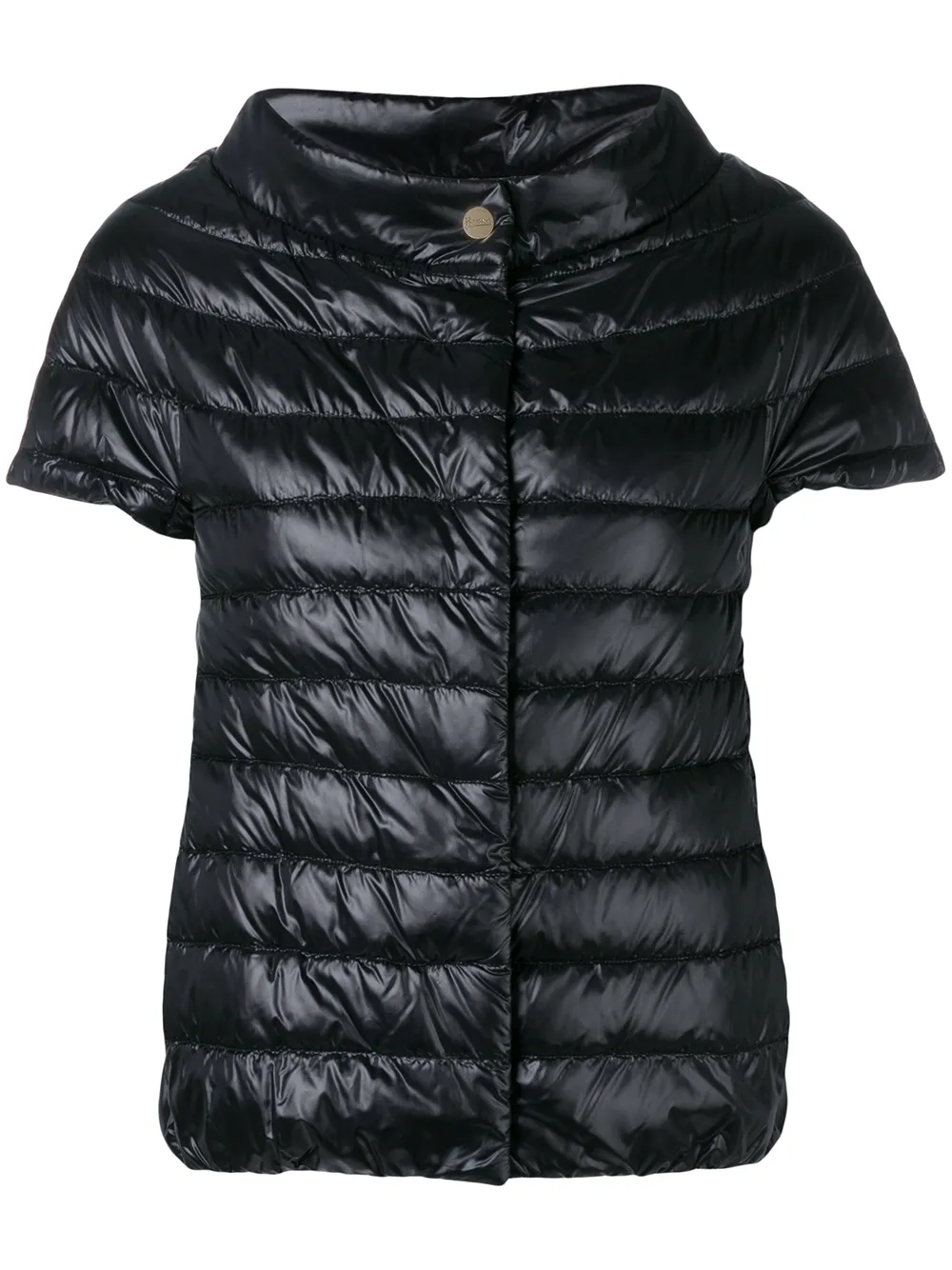 Пуховик Greta от Herno. Стоячий воротник, короткие рукава и перед с запахом. Цвет: черный.
