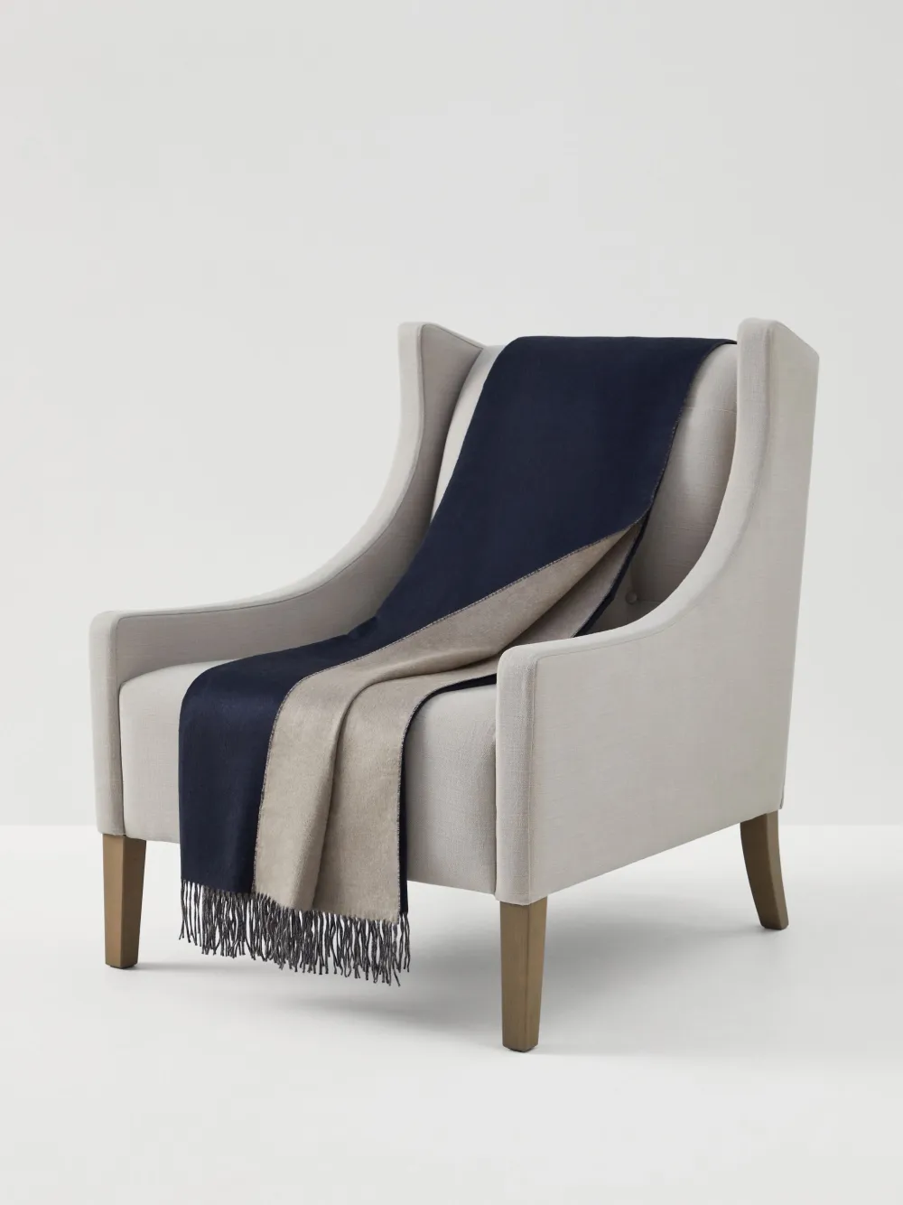 Шелковый плед с бахромой Brunello Cucinelli, синий
