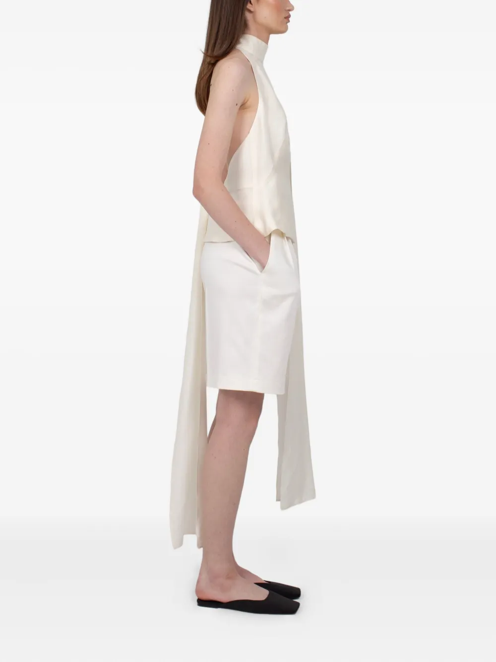 Белый топ на шее, без рукавов, застежка на пуговицы сзади, открытая спина