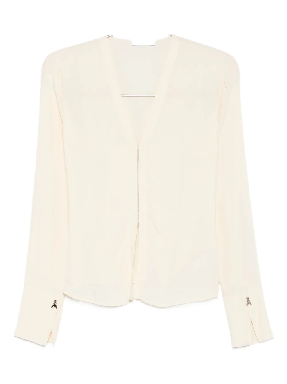 Белый v-образный вырез длинные рукава деталь с металлическим логотипом застежка на пуговицы разрезы на манжетах