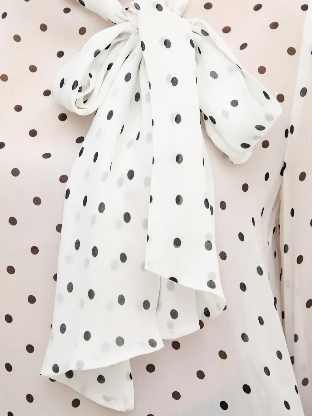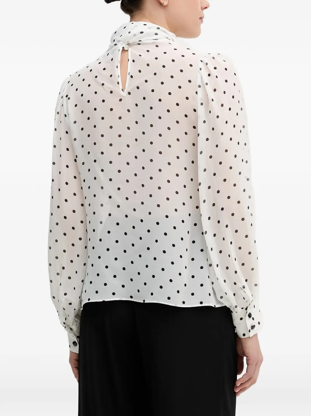 Белый шарф с принтом в горошек, длинные рукава, манжеты на пуговицах