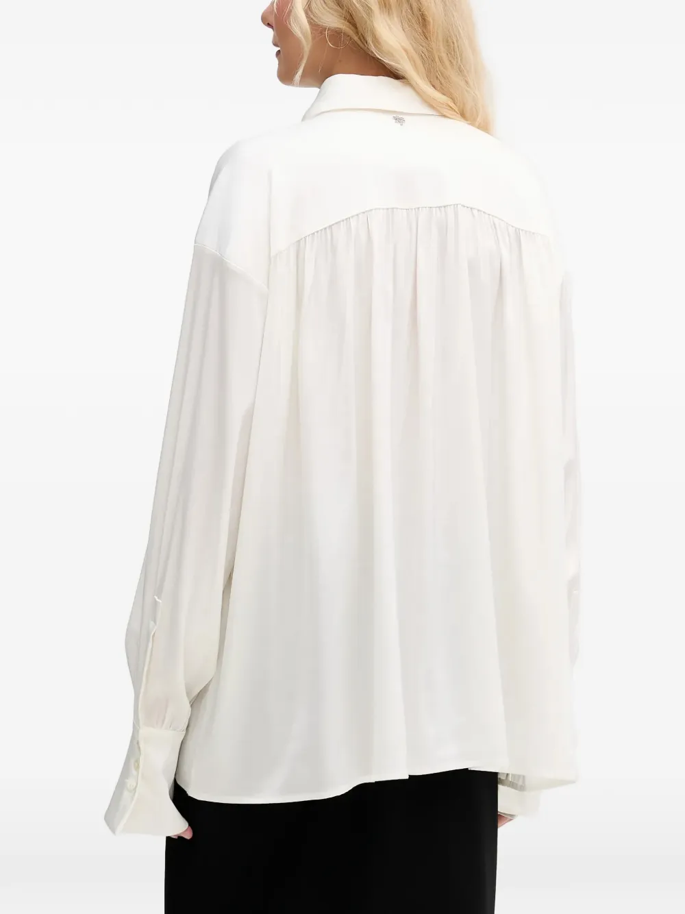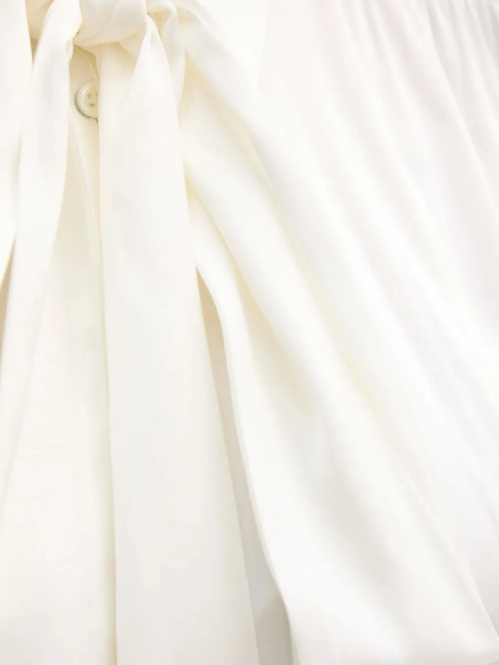 Белый цвет, однотонные пуговицы, завязка, застегивающиеся манжеты, плиссированные детали, воротник с острыми концами