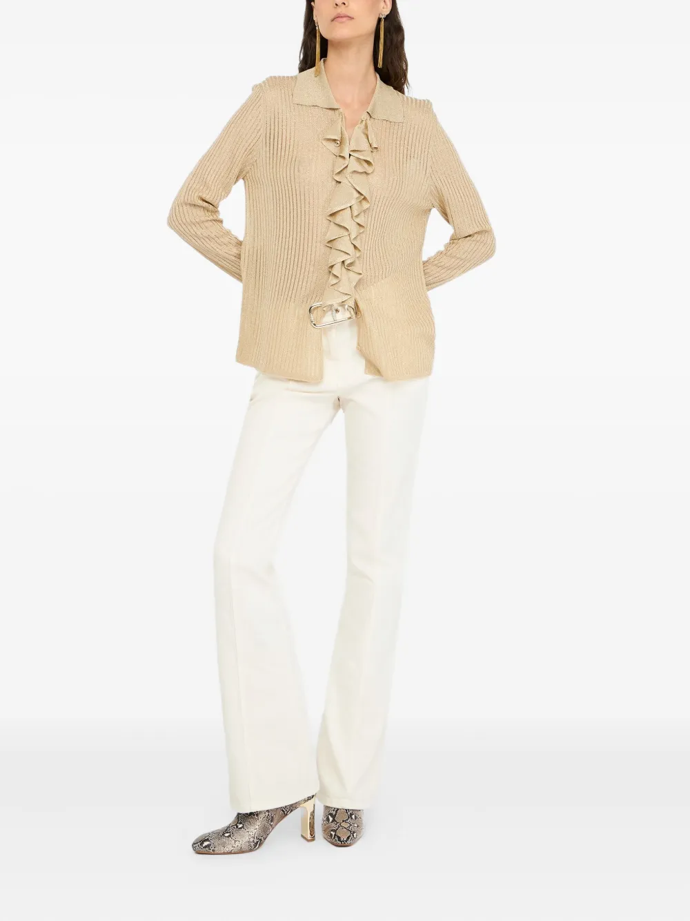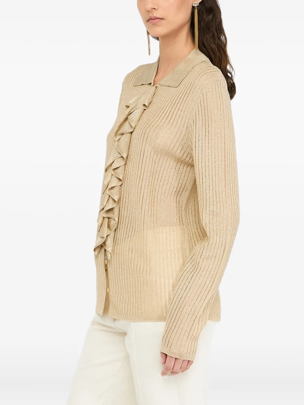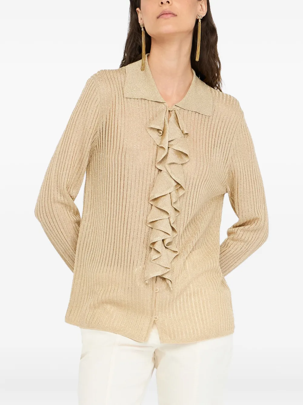 Блузка в рубчик с оборками Liu Jo, нейтральный