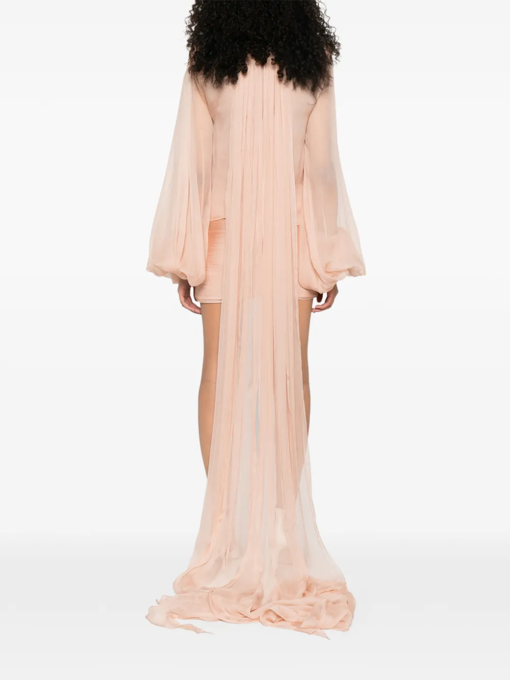 Лососево-розовые длинные рукава "баллон", застежка на пуговицы