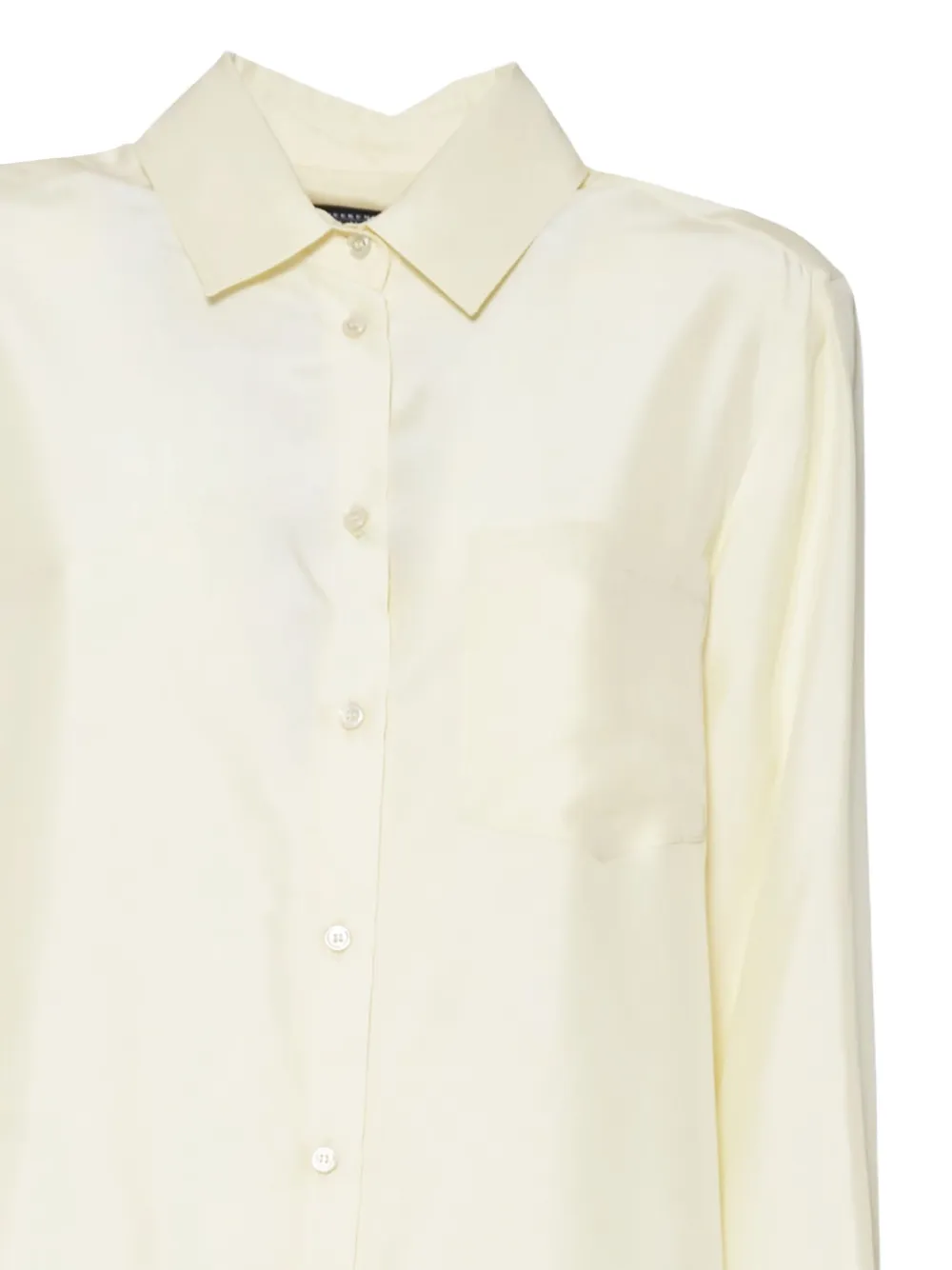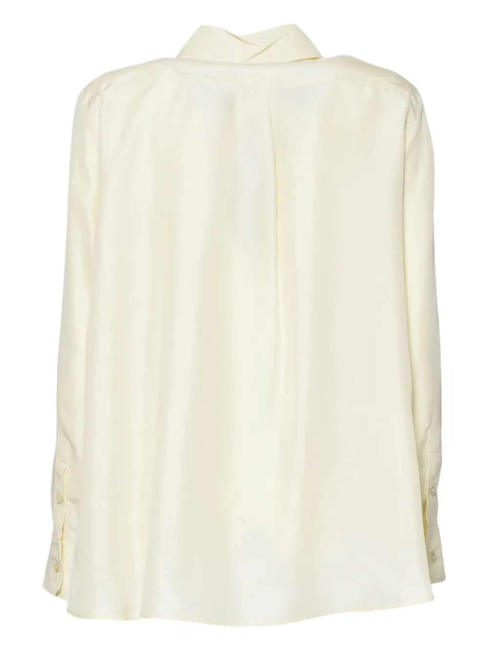 Бежевый шелковый топ с застежкой на пуговицы спереди, длинными рукавами и манжетами на пуговицах
