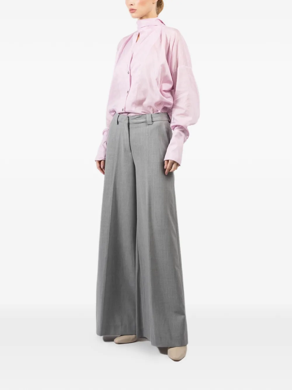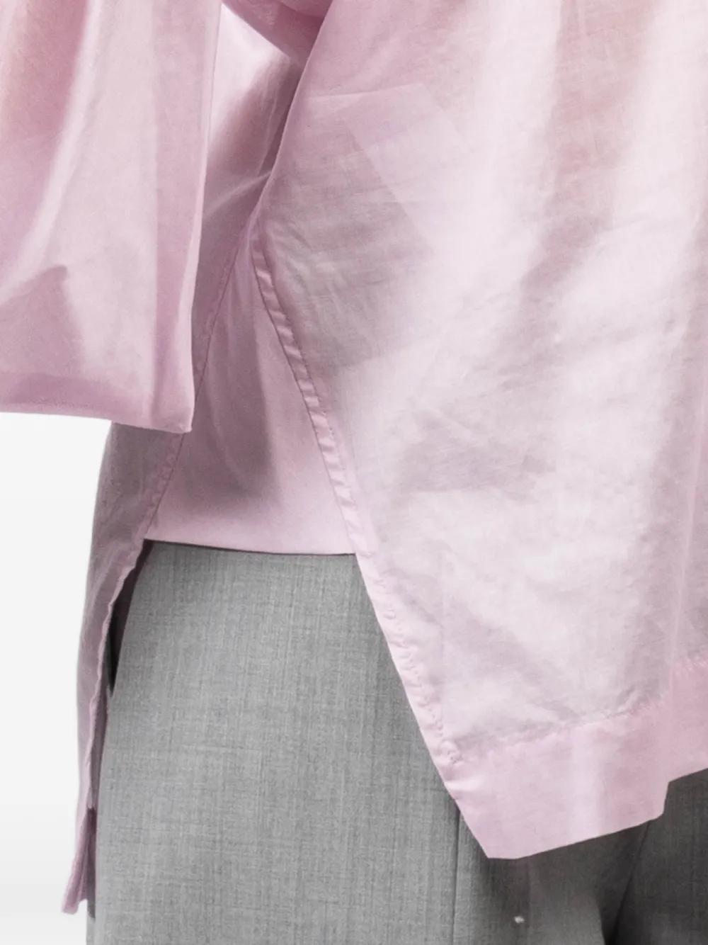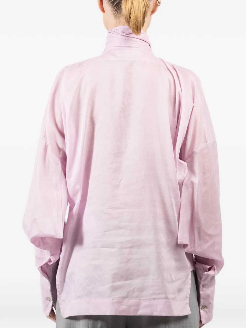 Розовая рубашка с застежкой на пуговицы, бантом, длинными рукавами и боковыми разрезами