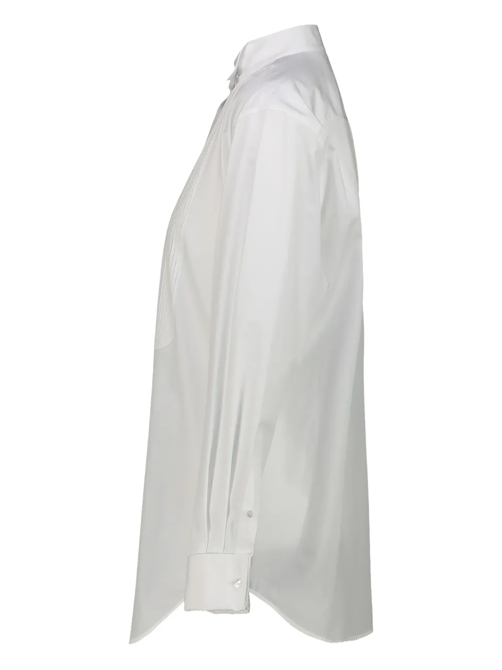 Белая рубашка с плиссированной вставкой, застежкой на пуговицы, длинными рукавами и манжетами на пуговицах