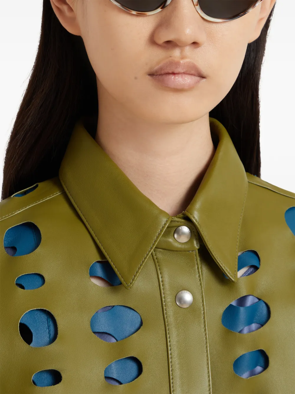 Кожаная рубашка с вырезами Marni, зеленый