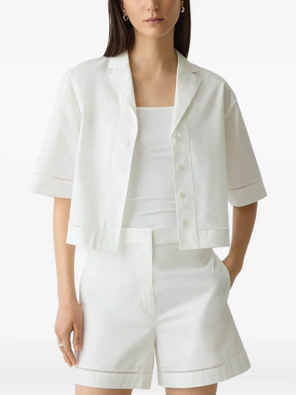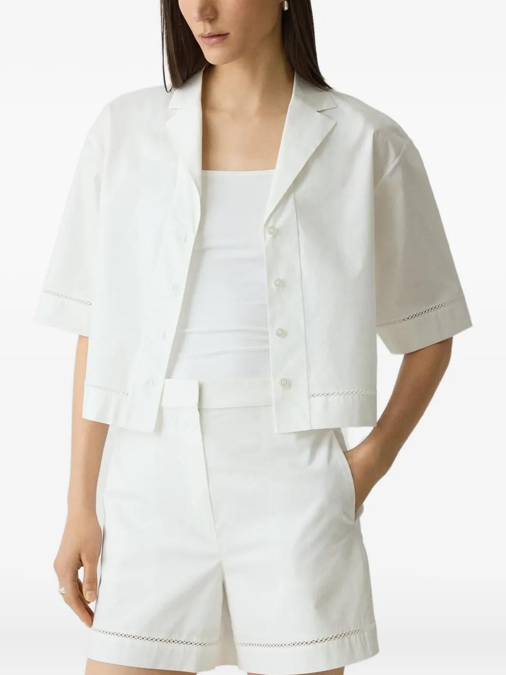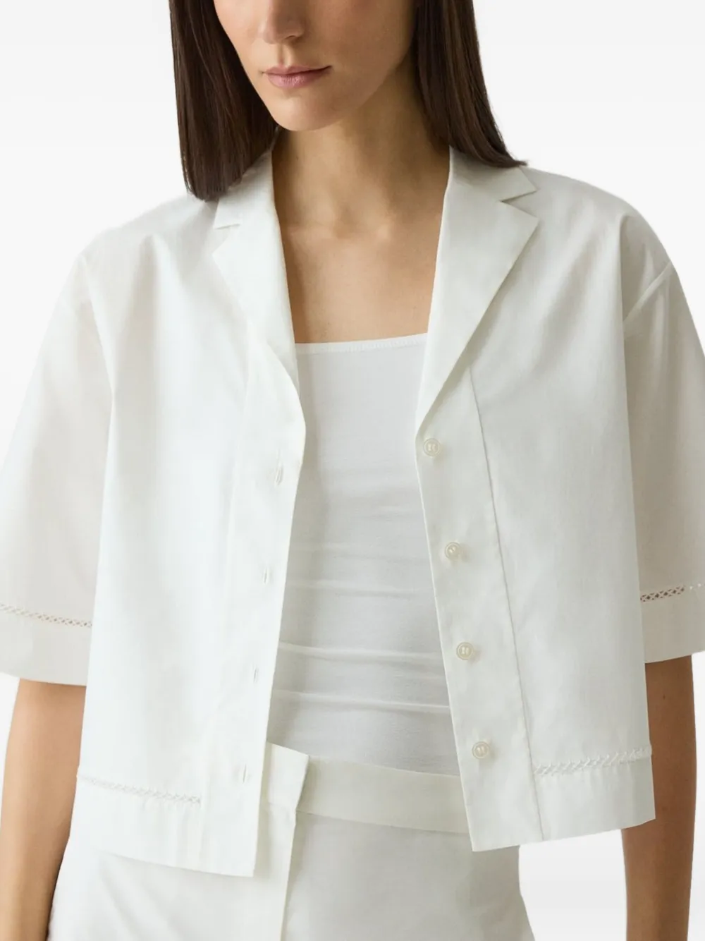Белый короткие рукава воротник с лацканами застежка на пуговицы спереди