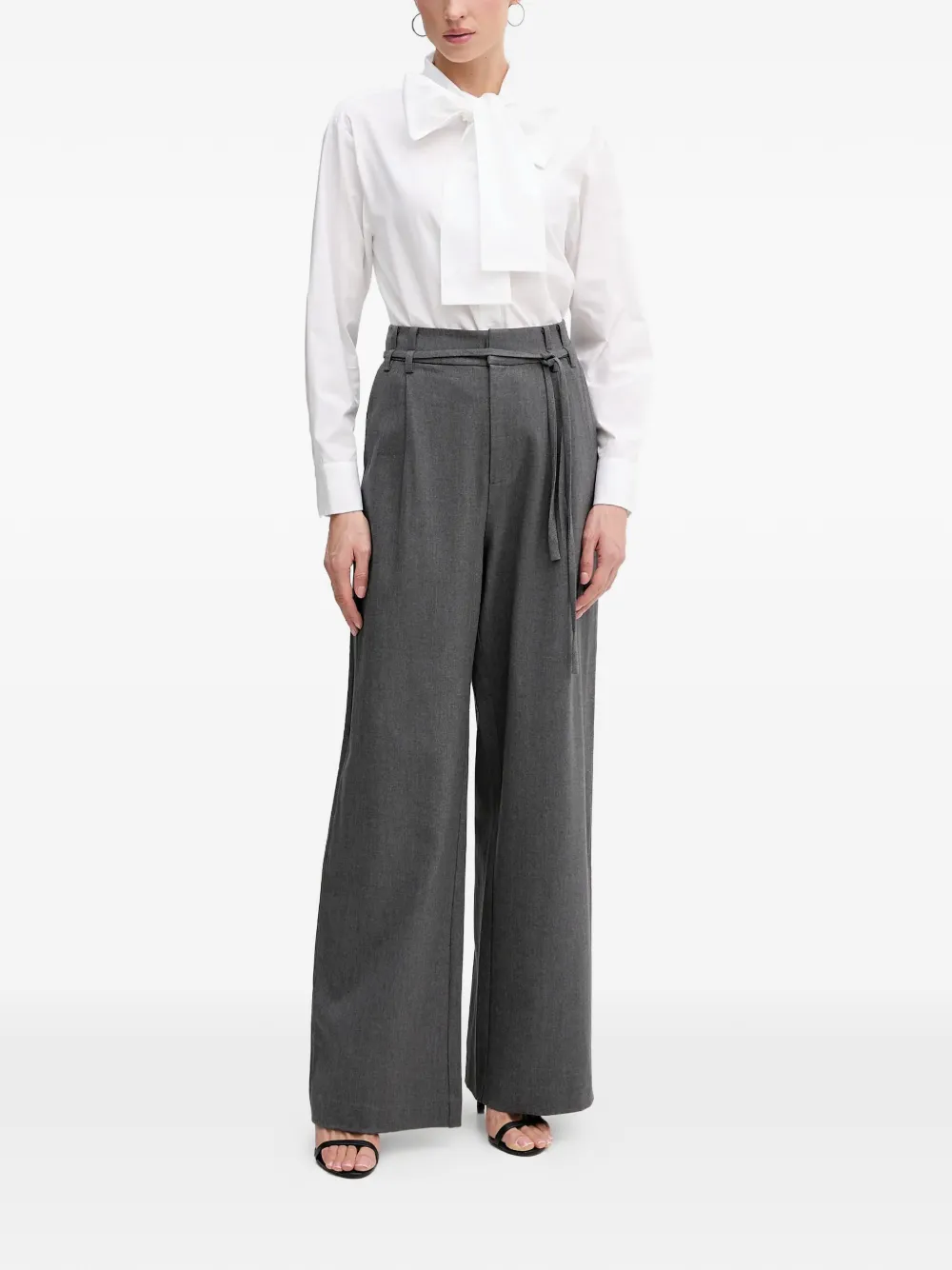 Белый бант, детали на манжетах с пуговицами, застежка на пуговицы, изогнутый подол
