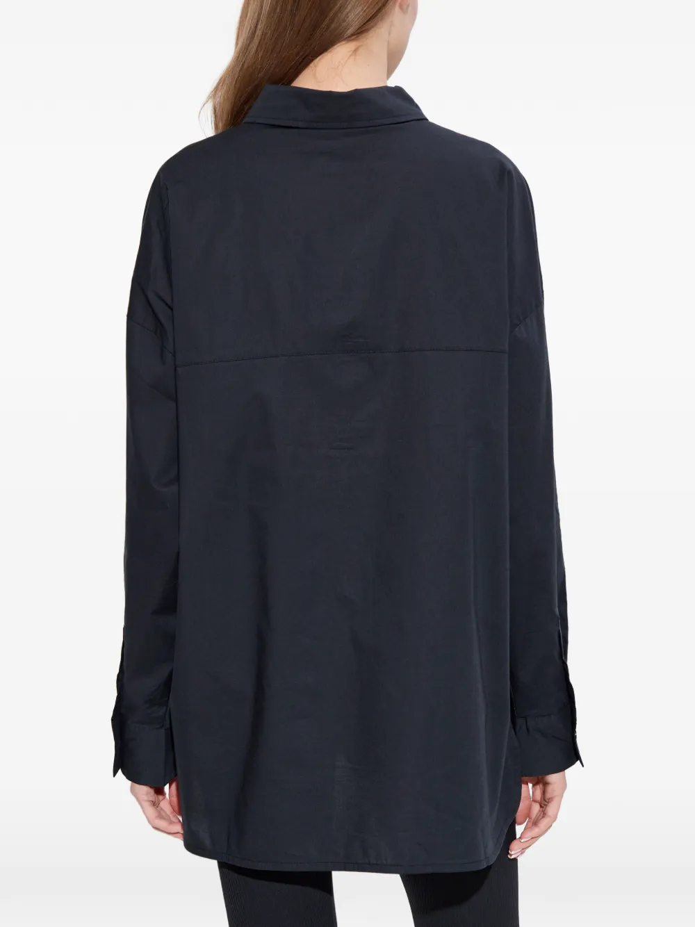 Черная рубашка с логотипом, нагрудным карманом, застежкой на пуговицы спереди, длинными рукавами и манжетами на пуговицах