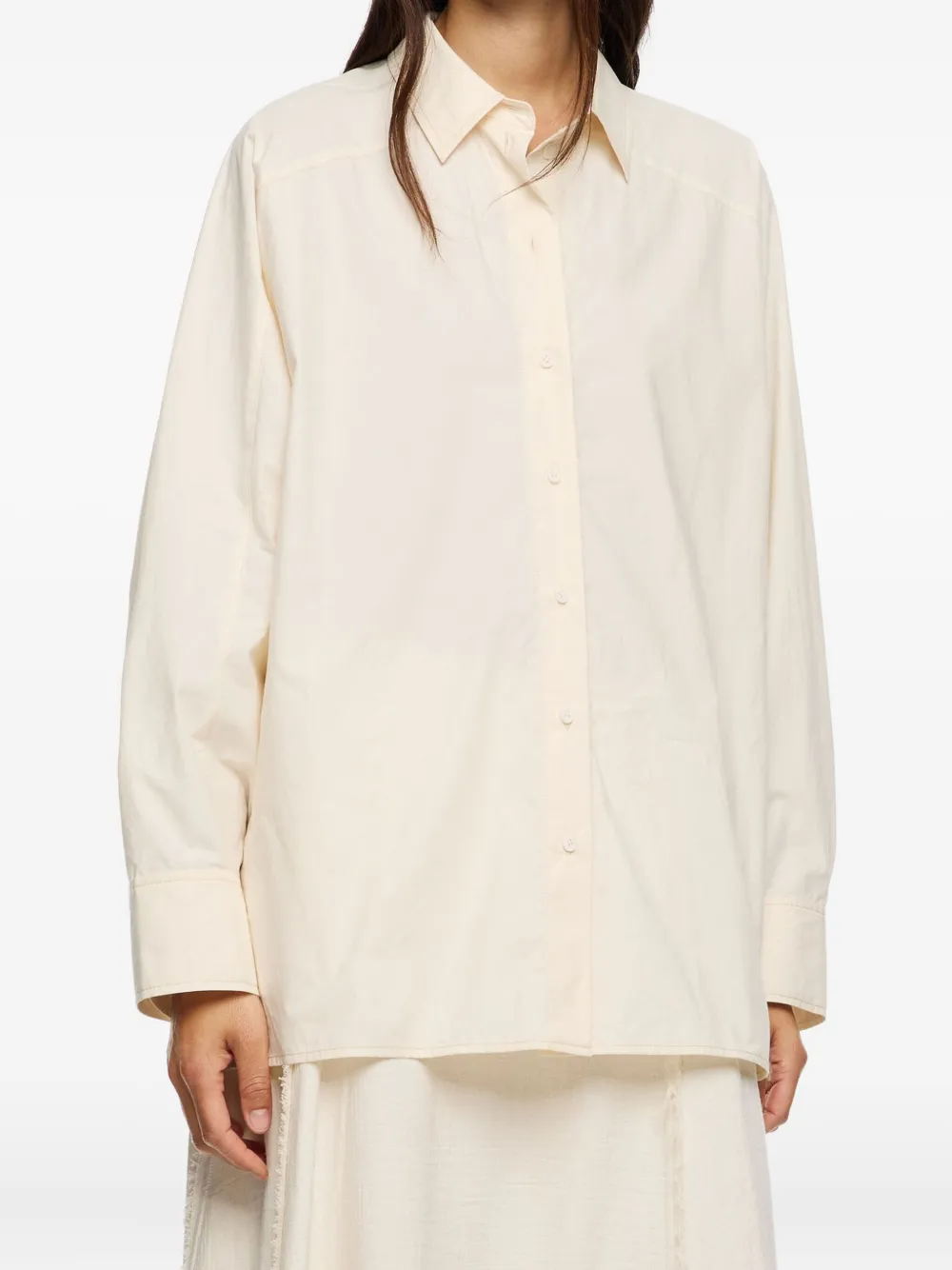 Ванильный, застежка на пуговицы, длинные рукава, классический воротник, нагрудный карман, кокетка