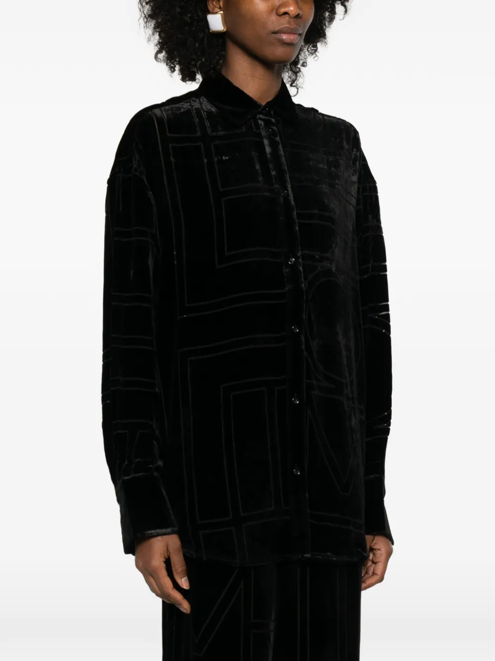 Черная рубашка с длинными рукавами, застежкой на пуговицы и отложным воротником