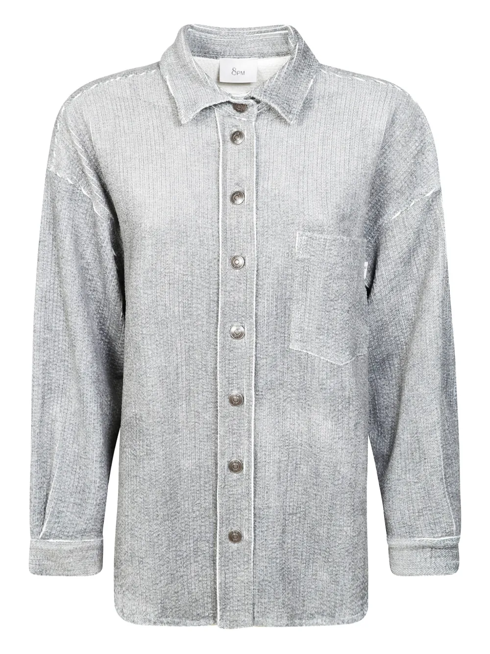 Серая рубашка с нагрудным карманом, застежкой на пуговицы и длинными рукавами