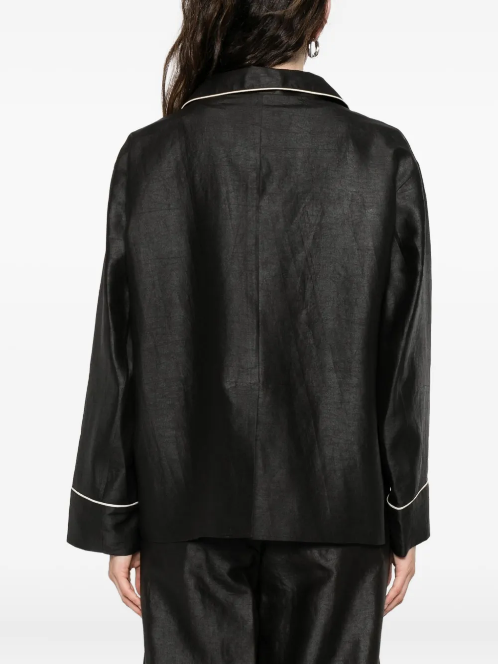 Черный цвет отделка кантом застежка на пуговицы нагрудный карман длинные рукава лацкан с вырезом