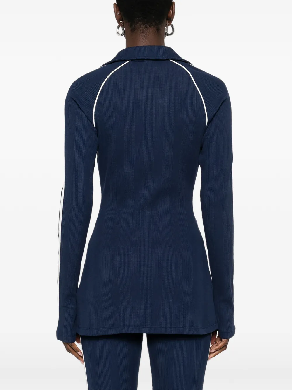 Индиго, вязаный в рубчик, полосатая отделка, застежка на пуговицы, длинные рукава, логотип