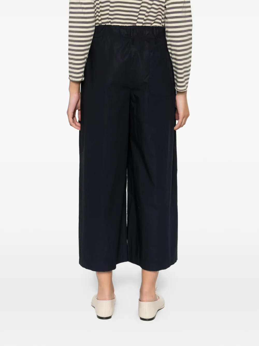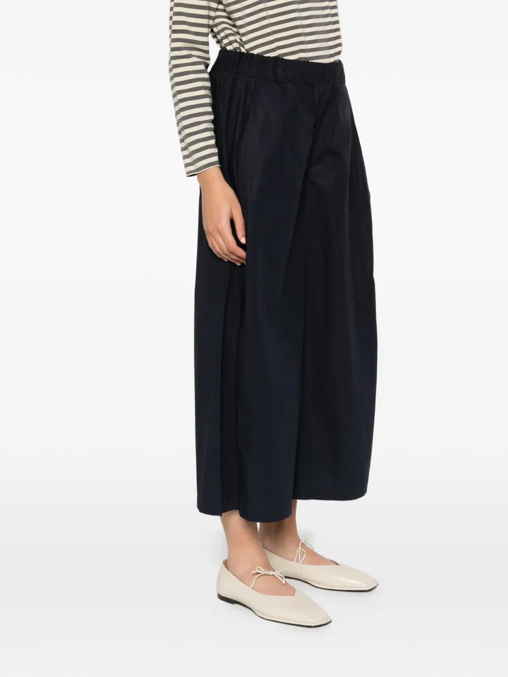 Синие широкие брюки с боковыми карманами, эластичным поясом и укороченными штанинами
