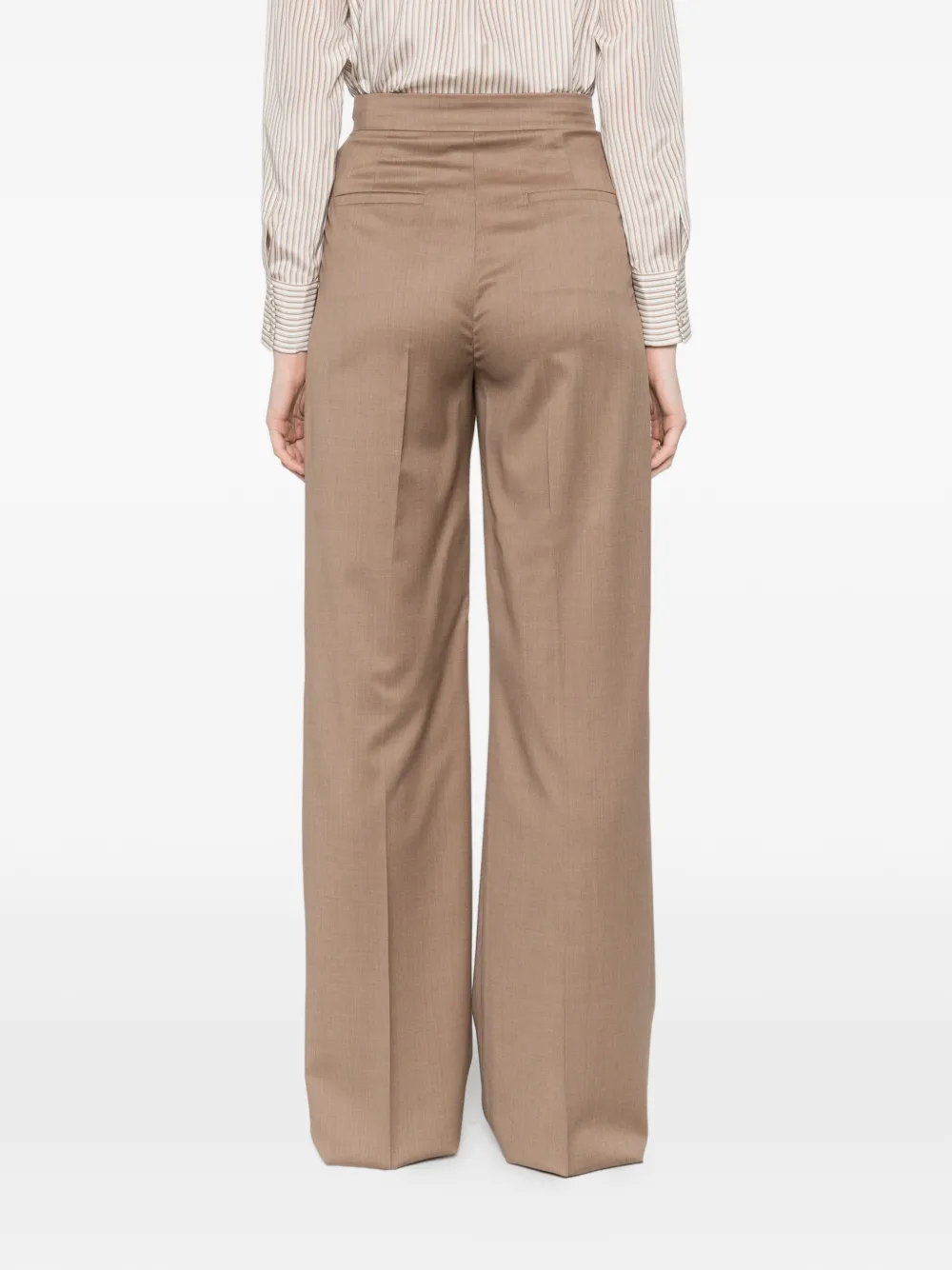 Светло-коричневый цвет, плиссированный дизайн, боковые карманы, прямые брючины, шлевки для ремня, потайная застежка спереди