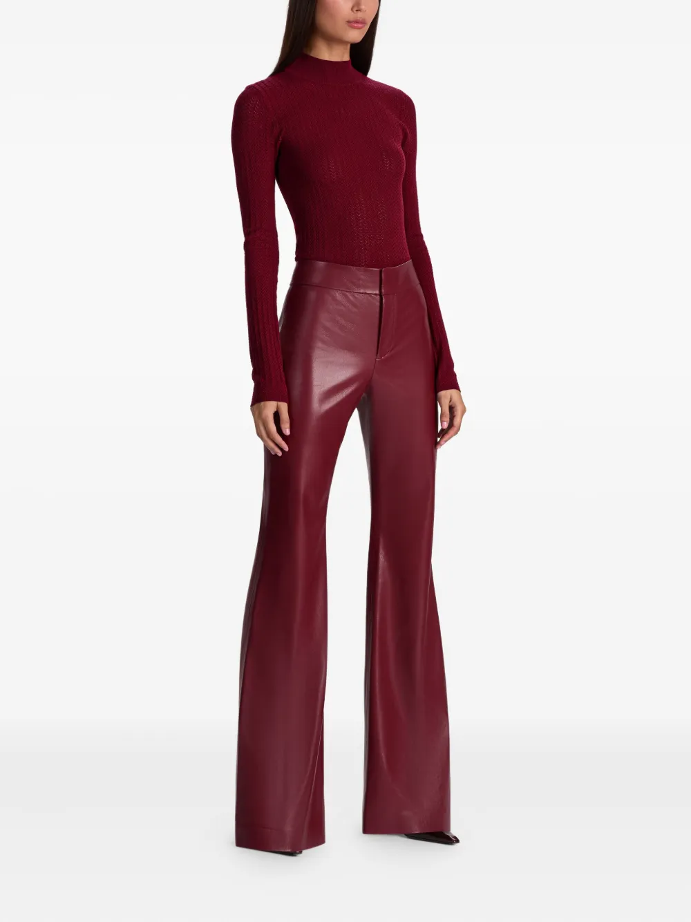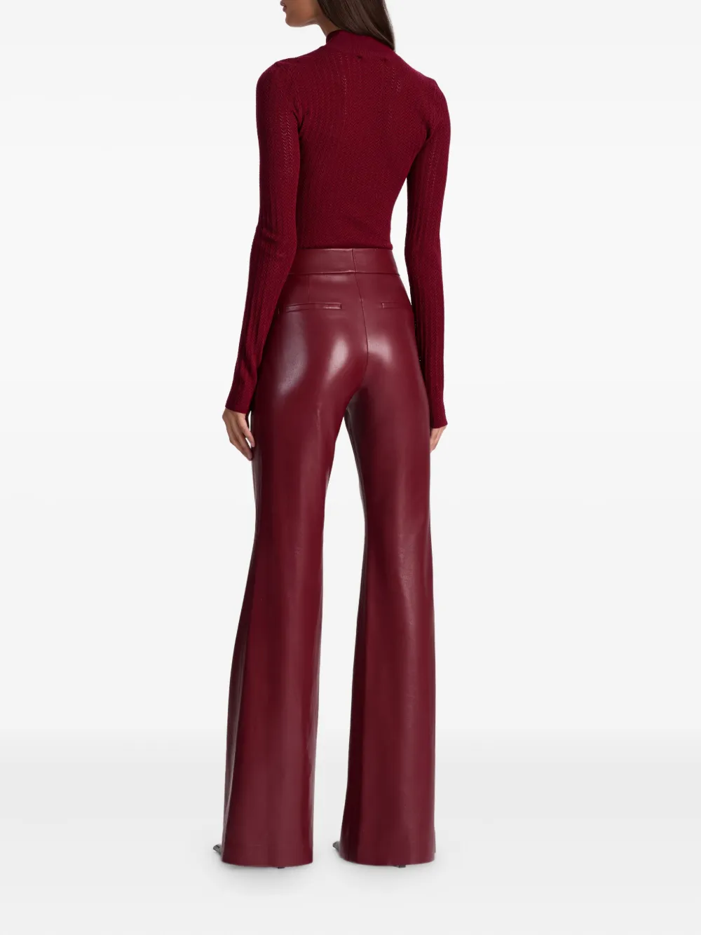 Бордовый веганская кожа брюки-клеш застежка на молнии прорезные карманы