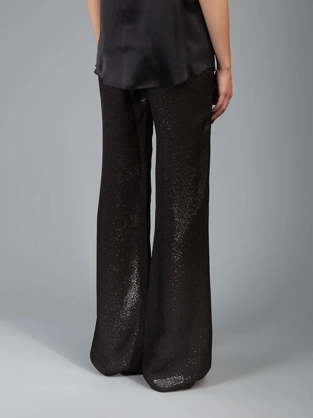 Черные брюки от L'Agence с блестящим покрытием и прямыми широкими штанинами.
