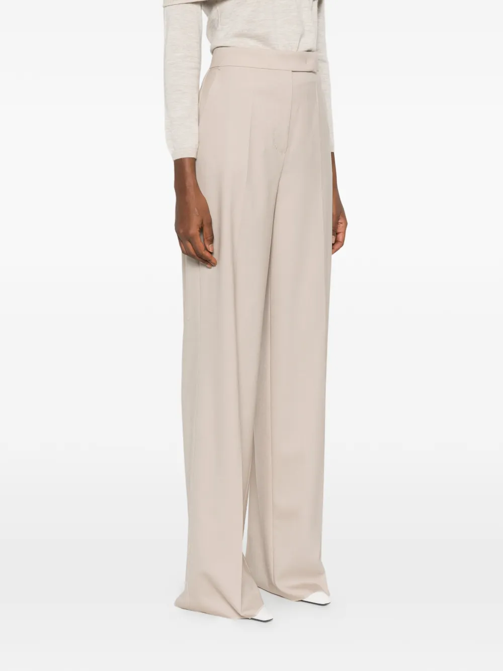 Бежевые широкие брюки с боковыми карманами и скрытой застежкой