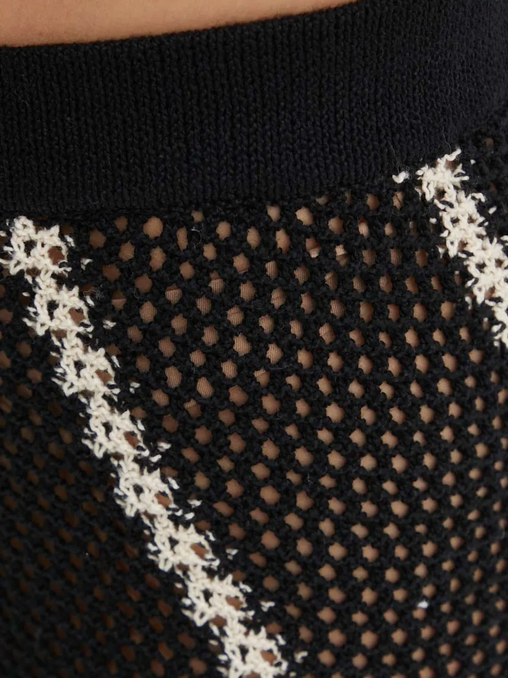 Черно-белые полосатые вязаные брюки-клеш с высокой талией и ребристым поясом